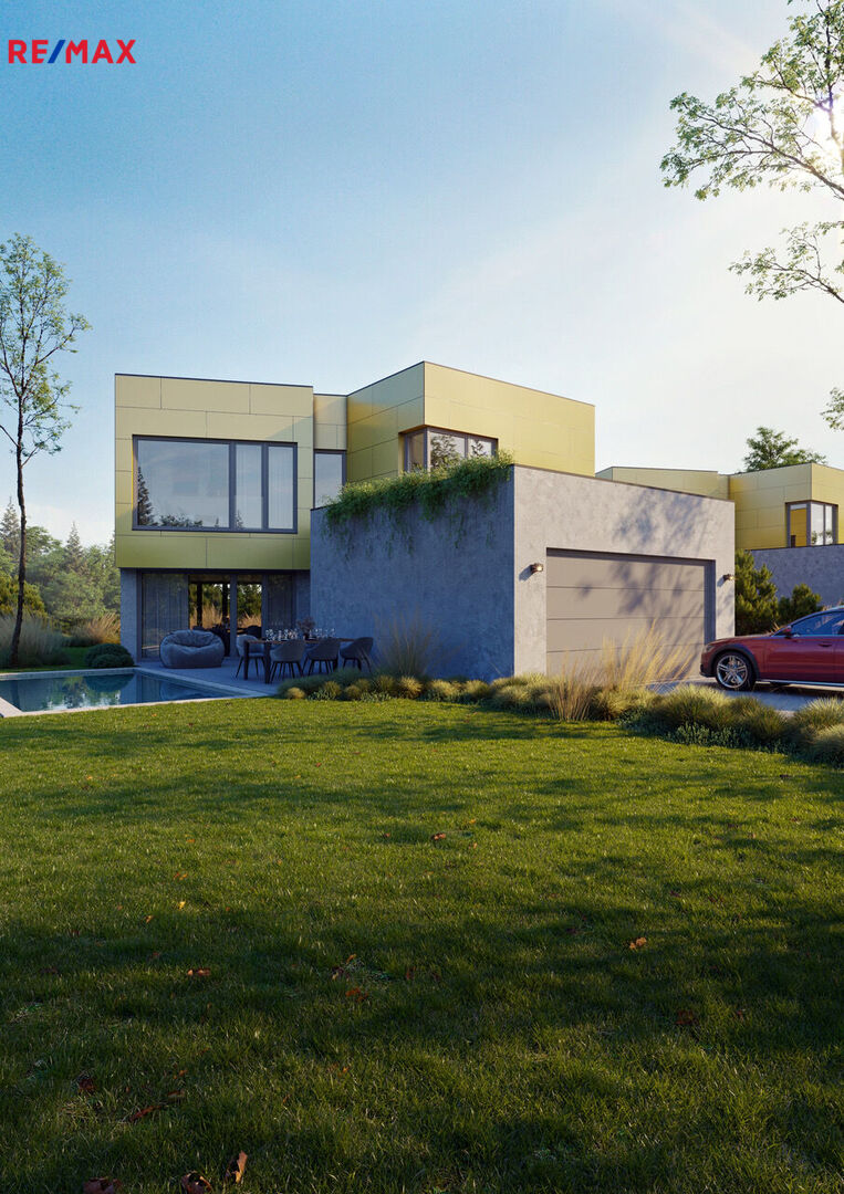 • Praktické detaily: Součástí je garáž s přímým vstupem do domu a dvě další venkovní parkovací stání. Samozřejmostí je technická místnost pro technologie.