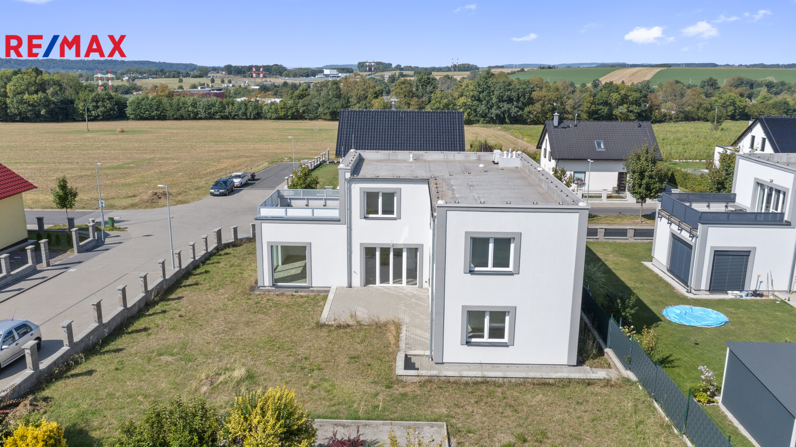 Moderní rodinný dům ve tvaru L je stavěn dle nejnovějších trendů s důrazem na kvalitní architektonické zpracování a provedení - podlahové vytápění, klimatizace, velkoformátová okna s izolačními trojskly, …