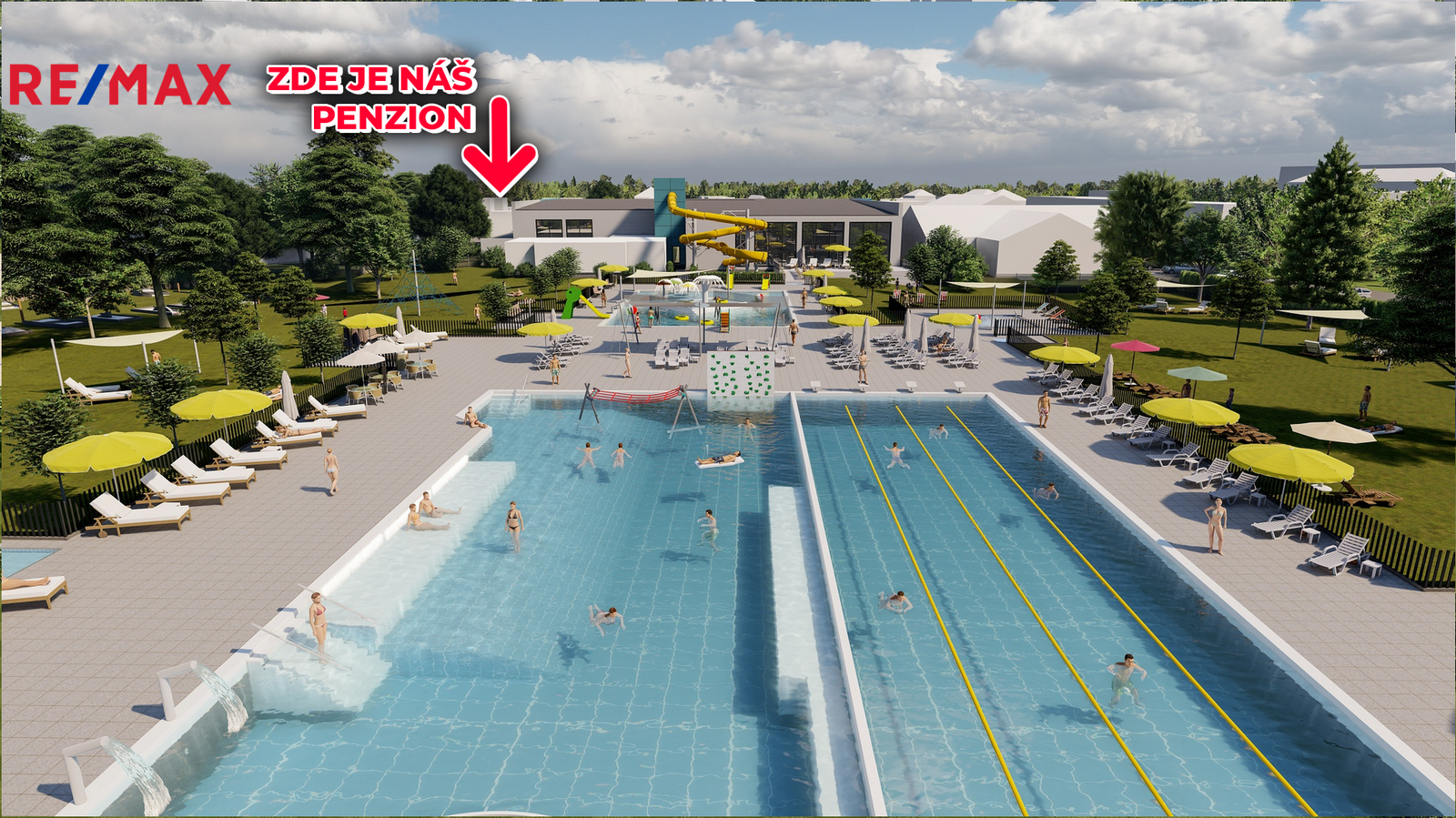 Velkou výhodou je poloha penzionu přímo naproti městskému koupališti s krytým bazénem, které aktuálně prochází rozsáhlou rekonstrukcí s investicí ve výši 500 milionů korun. Tato investice zásadně zvýší atraktivitu lokality a přinese nové možnosti pro rozvoj ubytovacích kapacit – nejen v letní sezóně, ale především i v zimních měsících. Penzion je navíc v současnosti plně obsazen, což potvrzuje jeho stabilní a prosperující provoz s okamžitým výnosem z pronájmů.
