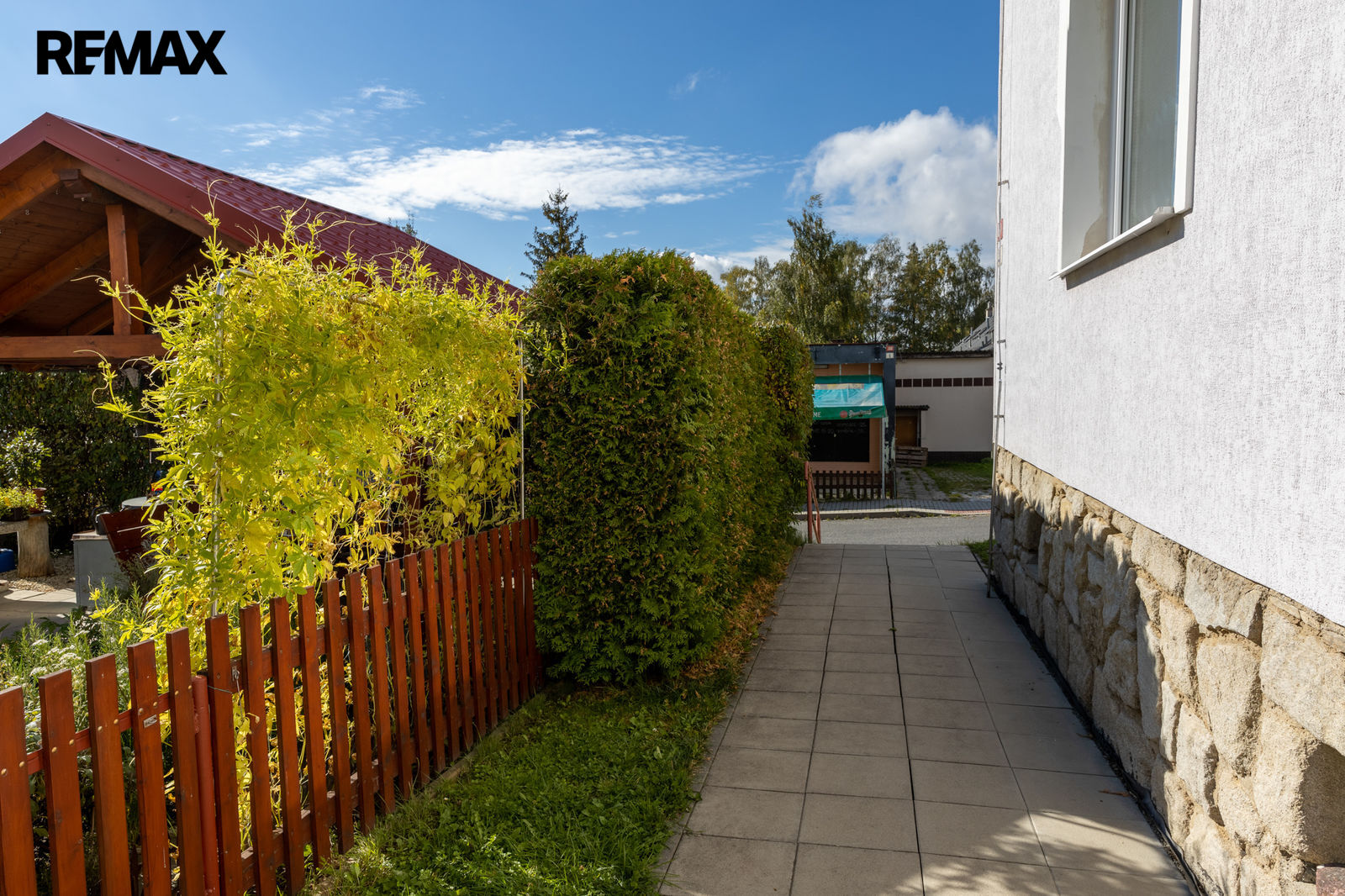 K domu je bezproblémový přístup z obecní komunikace. Upravená zahrada je rovinatá ve tvaru obdélníku. Na zahradě je postavena menší vedlejší dřevěná stavba /pergola/. Ke každé bytové jednotce náleží sklepní prostor o výměře 11 až 14 m2 a také jsou k dispozici společné prostory jako kolárna a sušárna.