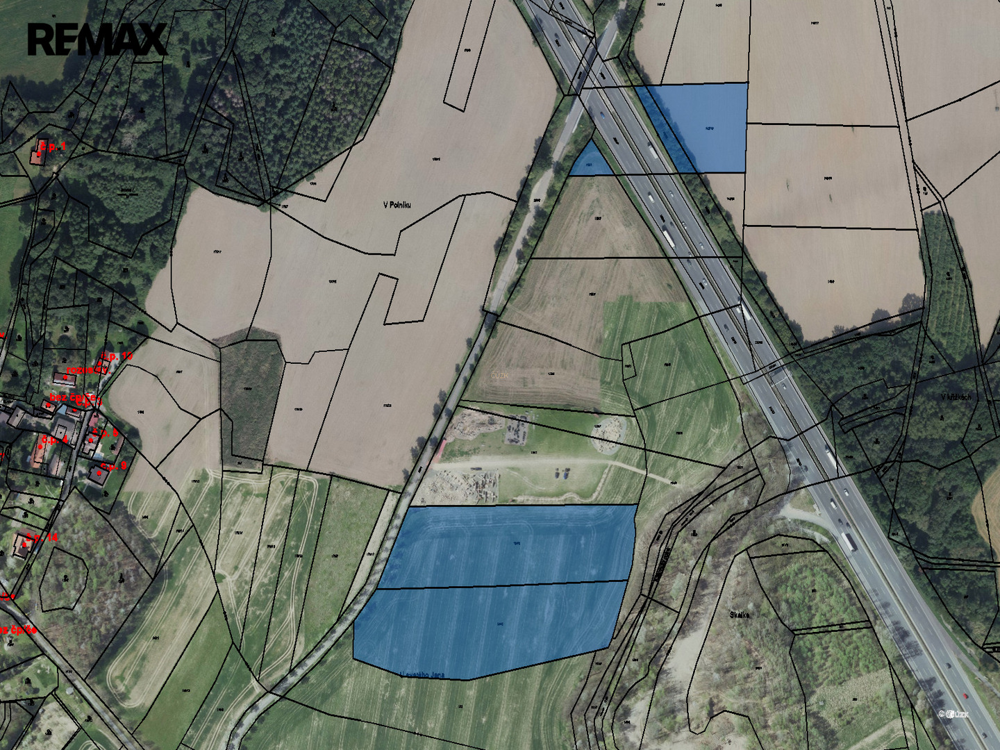 Soubor pěti zemědělských investičních pozemků u dálnice D1 v Jažlovicích u Prahy, 29 081 m2.