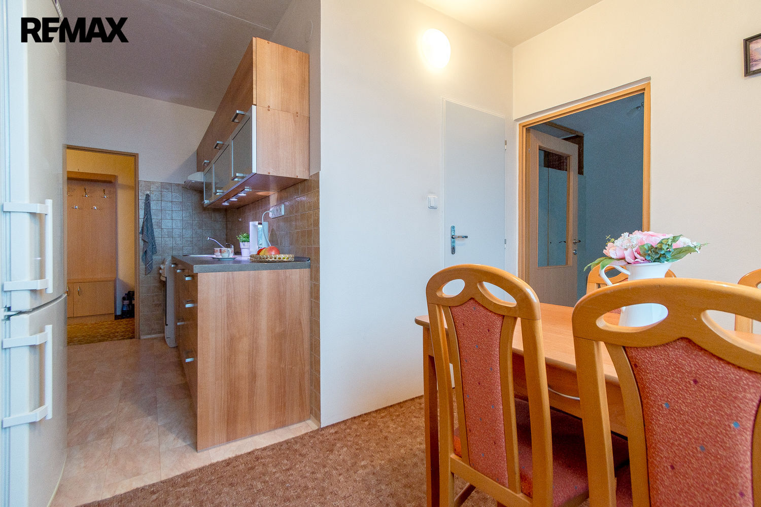 Byt se skládá z předsíně, 2 pokojů, kuchyně s kuchyňskou linkou, koupelny s vanou, samostatného WC, balkónu, komory na patře (mimo byt) a sklepa. V kuchyni je umístěna kuchyňská linka s plynovým sporákem a elektrickou troubou. Dostatek úložného prostoru nabízí prostorné vestavěné skříně v předsíni. Z ložnice je možný vstup na balkón.