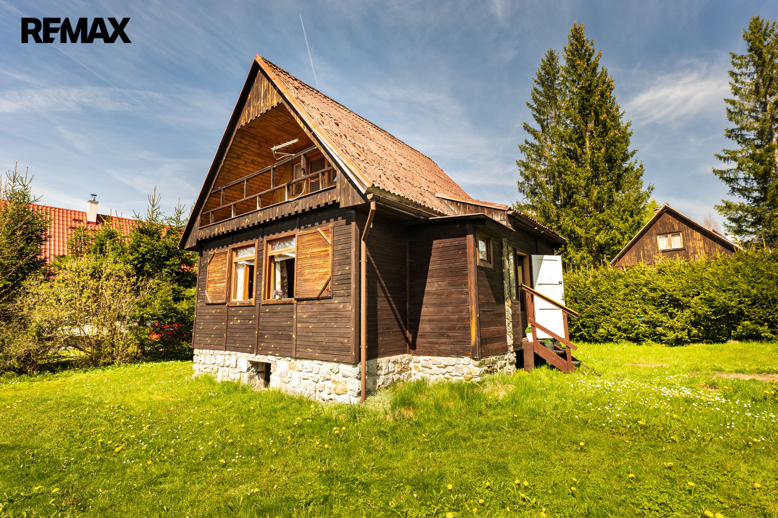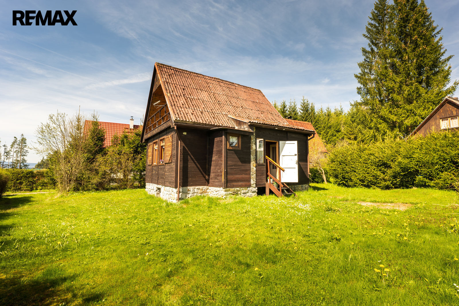 Částečně podsklepená chata o zastavěné ploše 43 m2 leží na pozemku o celkové výměře 487 m2.