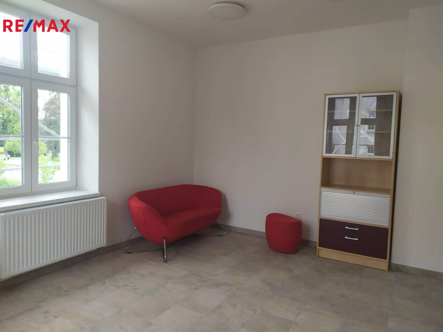 Místnost má 20 m2, dosud užívaná jako kancelář, k dispozici je na patře sdílená vybavená kuchyňka a WC (pánské i dámské). O patro níže najdete kavárnu s dětským koutkem.