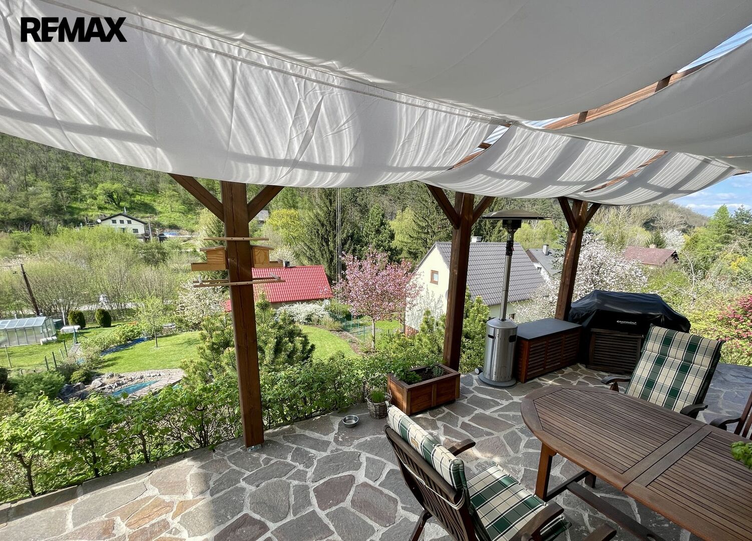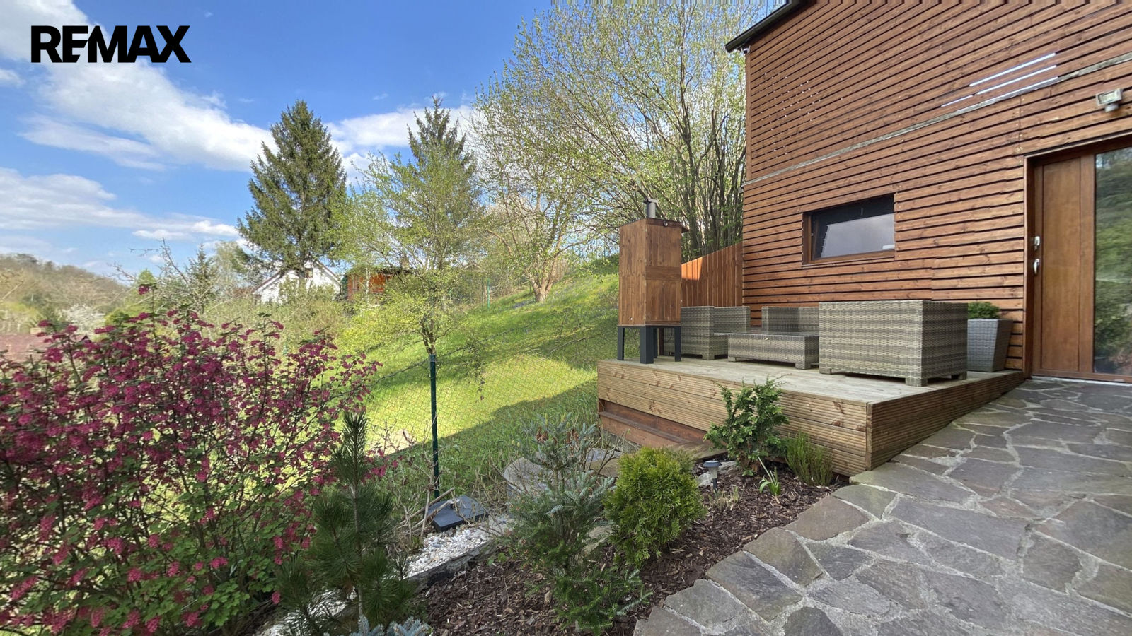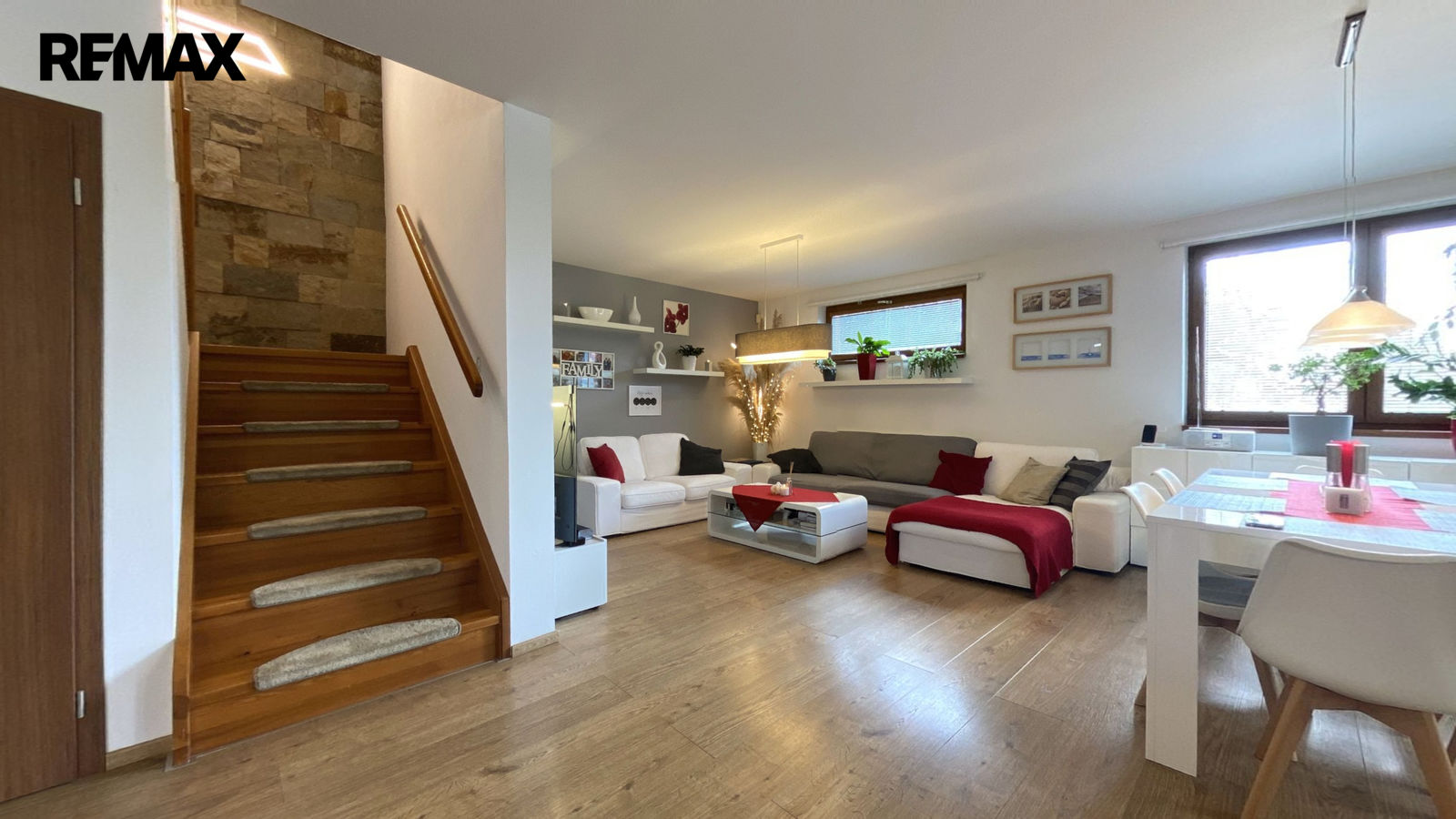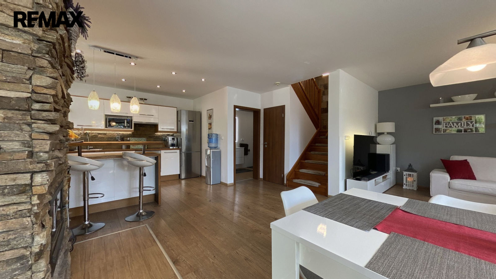 Vstupem z ulice se dostanete do 1.patra, ve kterém se nachází předsíň s úložným prostorem, 3 samostatné pokoje a koupelna s WC a rohovou vanou. V přízemí se nachází obývací pokoj, který je propojen s jídelnou i s kuchyňským koutem. Z obývacího pokoje je přímý vstup na prostornou terasu, ze které je nádherný výhled na okolní zeleň přilehlého údolí. Terasa je zastřešená, a chrání před vlivem nepříznivého počasí.