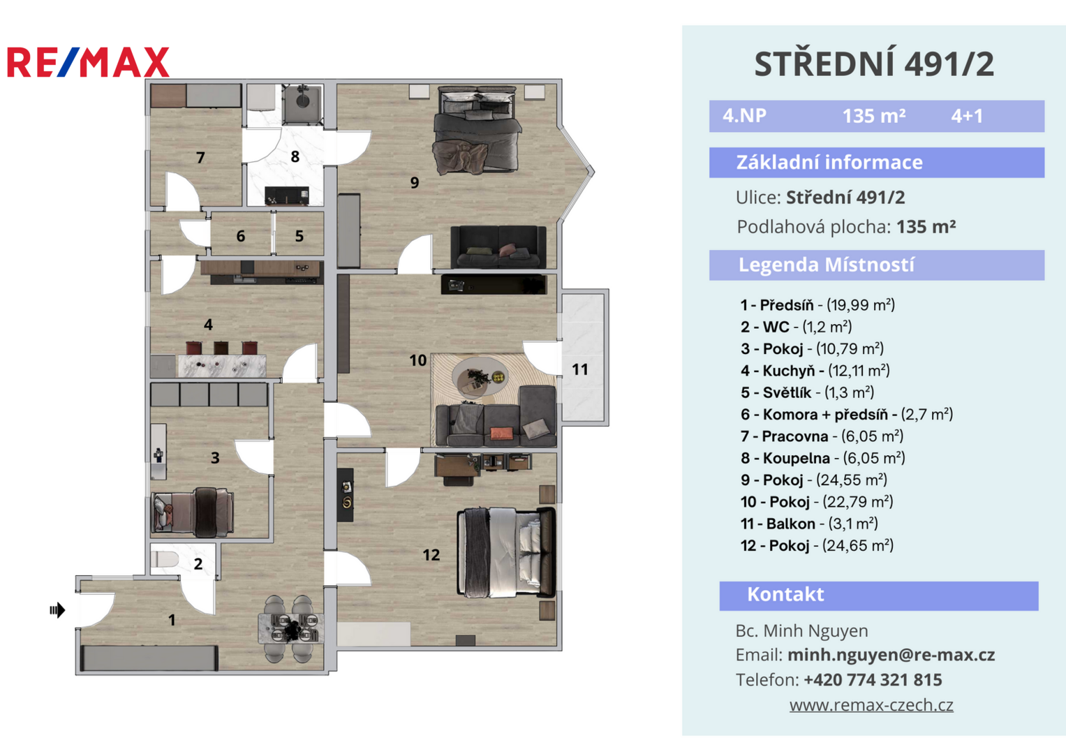 Neváhejte a domluvte si prohlídku ještě dnes! Takto prostorné byty v centru Ostravy jsou k dispozici jen zřídka. Pro více informací a sjednání termínu volejte nebo pište. Rád Vám byt osobně ukážu.