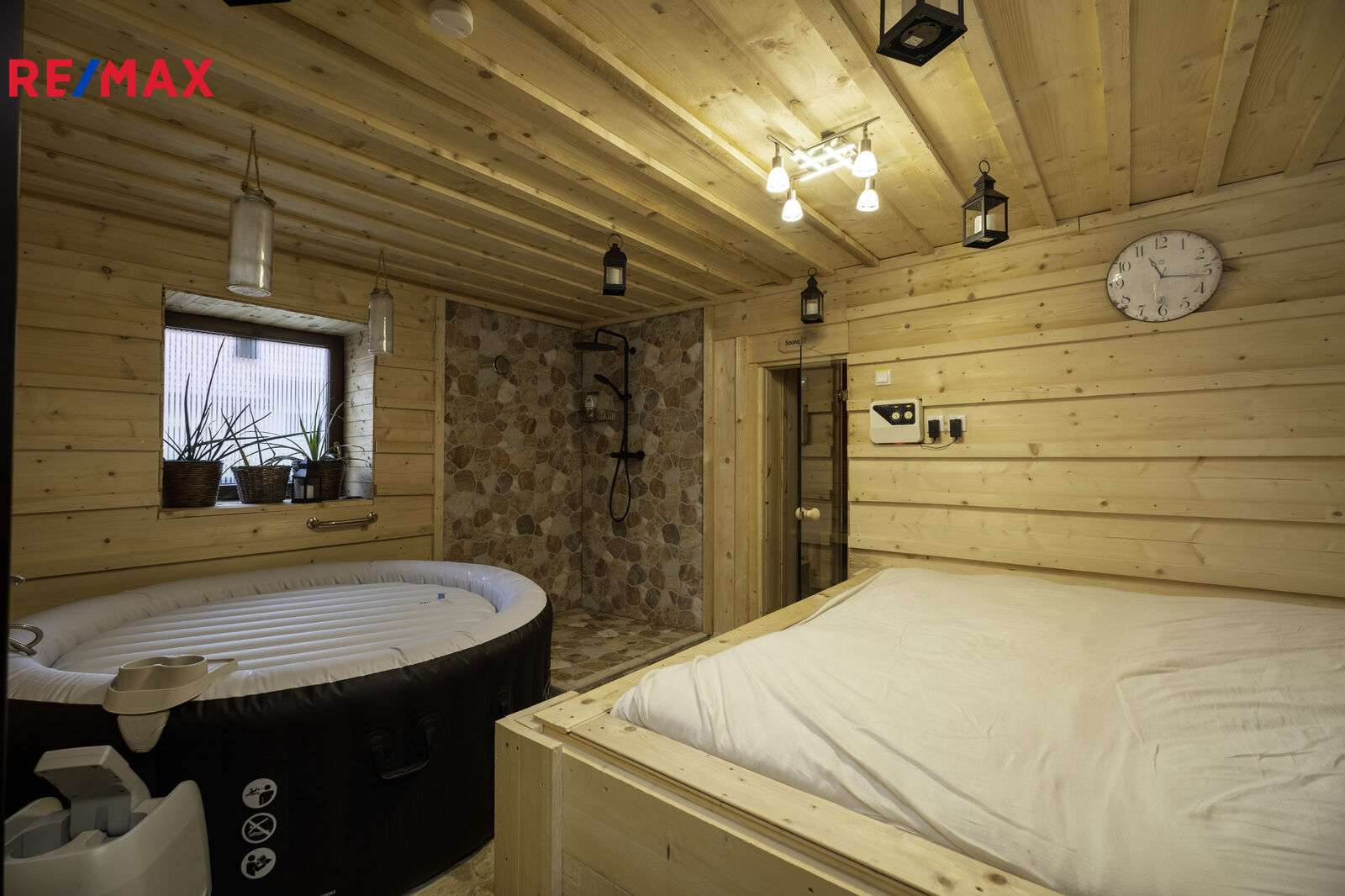 Tato nemovitost Vám nabízí dva bazény, tři vířivky, které poskytují dokonalý odpočinek, v jakém ročním období. Součástí je také vlastní wellness se saunou, kde můžete načerpat energii v soukromí.