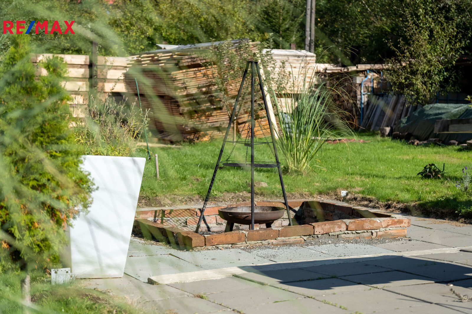 Další venkovní posezení na zahradě je perfektně uzpůsobené pro grilování, což podtrhuje po atmosféru toho místa, kde grilujete pod večerní oblohou.