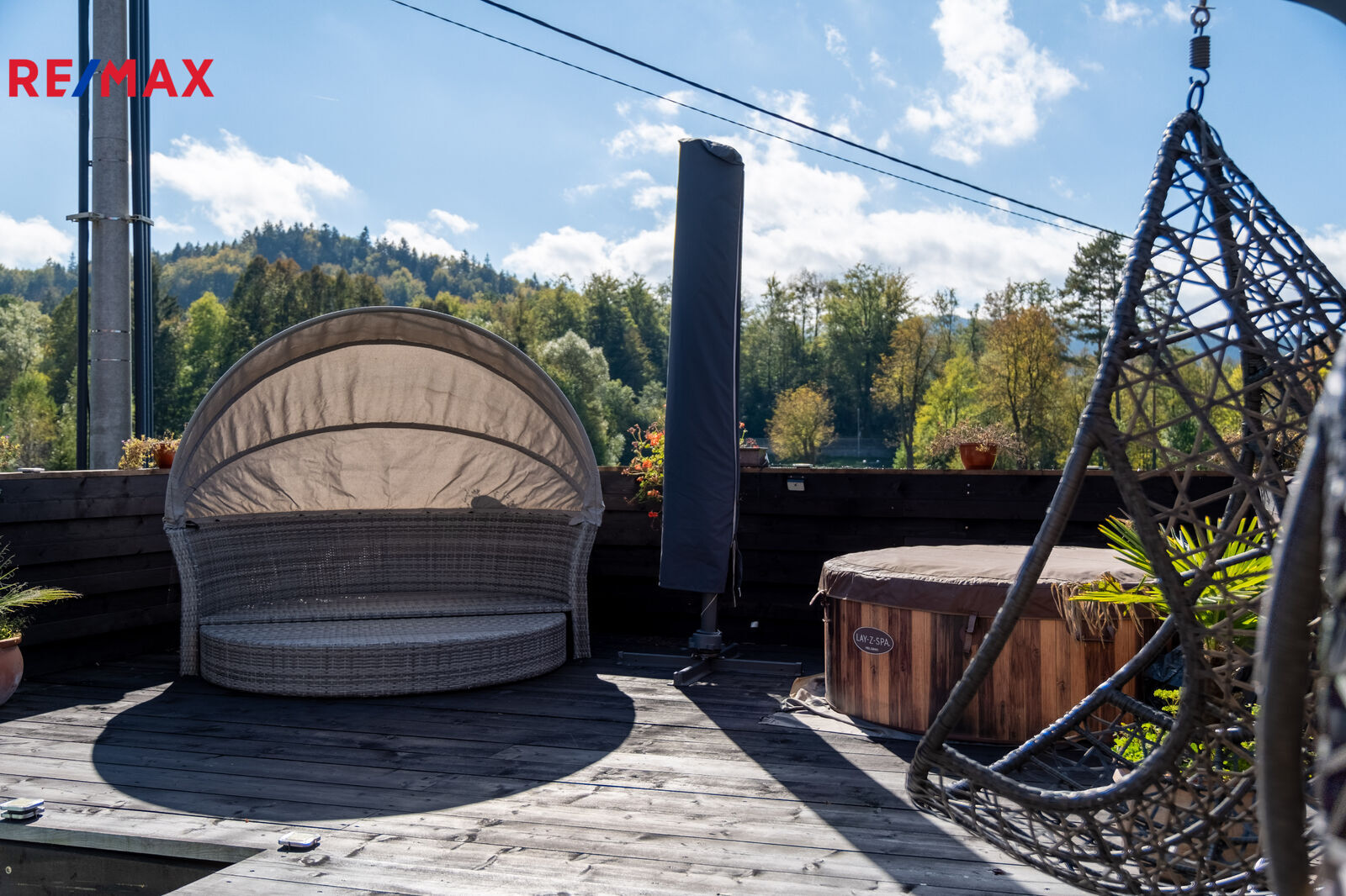 Tento prostor poskytuje nádherný výhled do zeleně, což z něj činí ideální místo pro odpočinek.