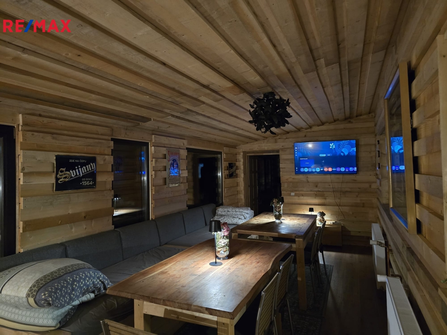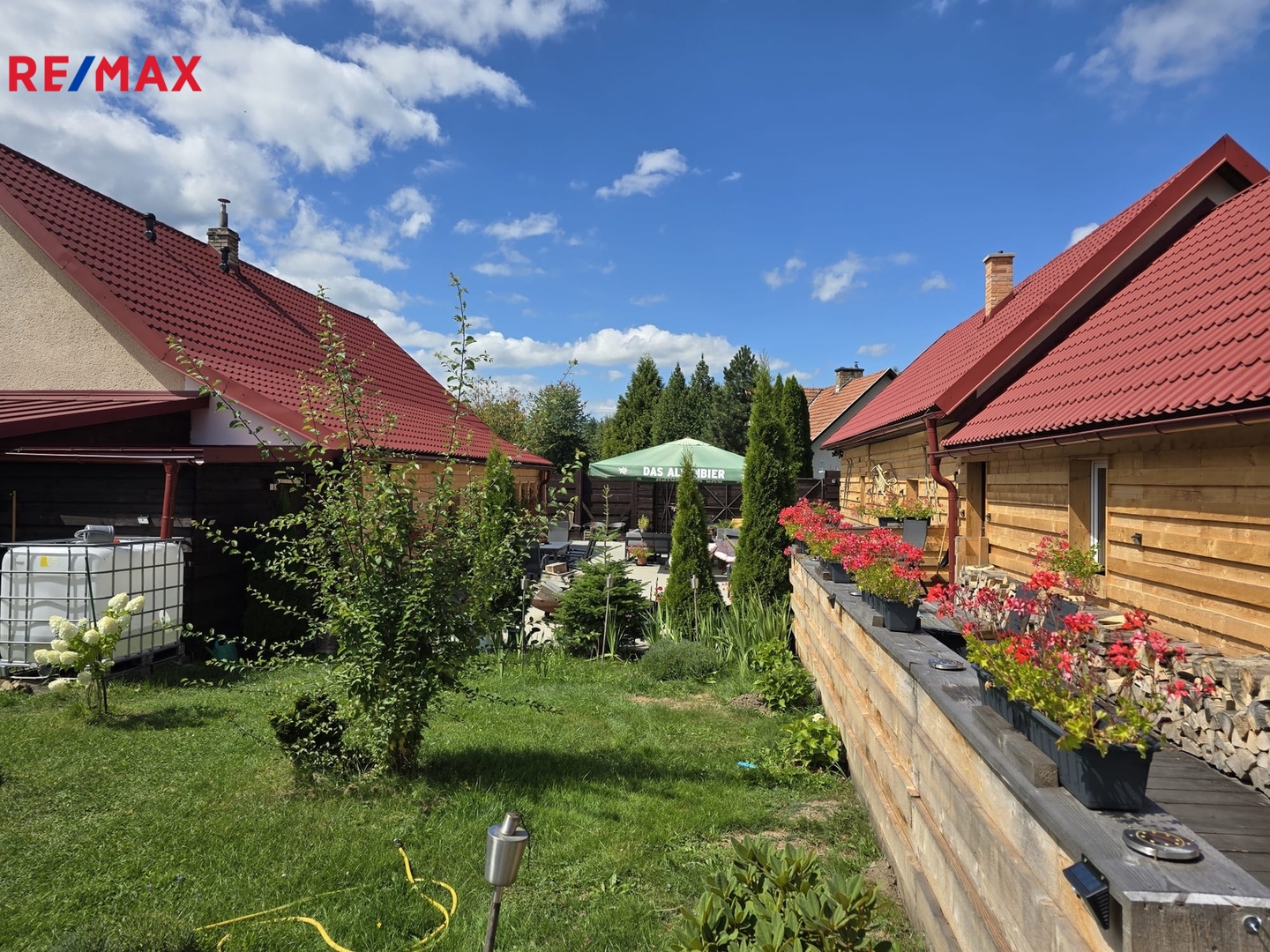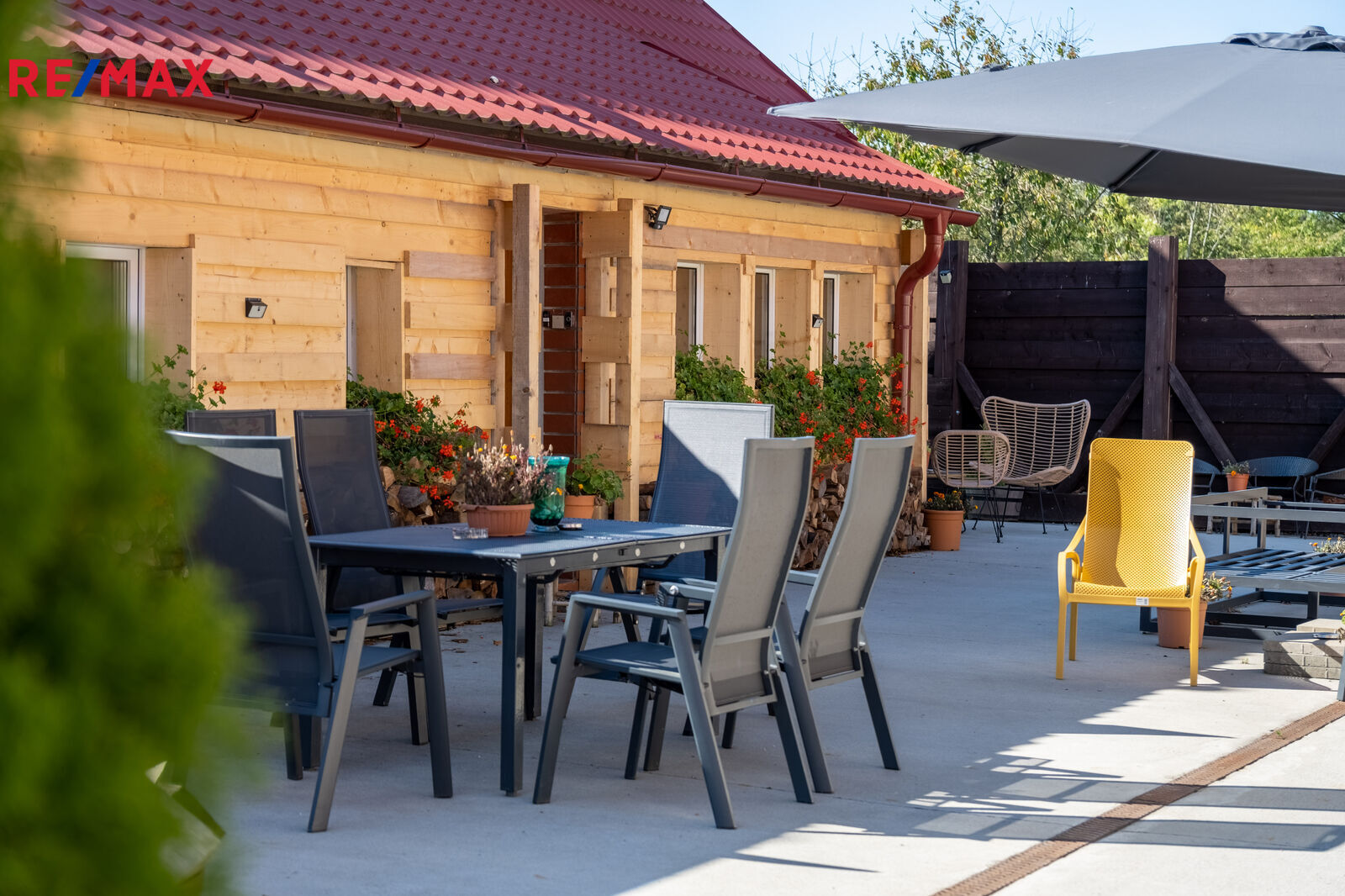 Velkou výhodou je prostorná terasa a výhledy do zeleně. která pojme až 40 lidí- ideální pro venkovní posezení, oslavy, nebo grilování s přáteli.