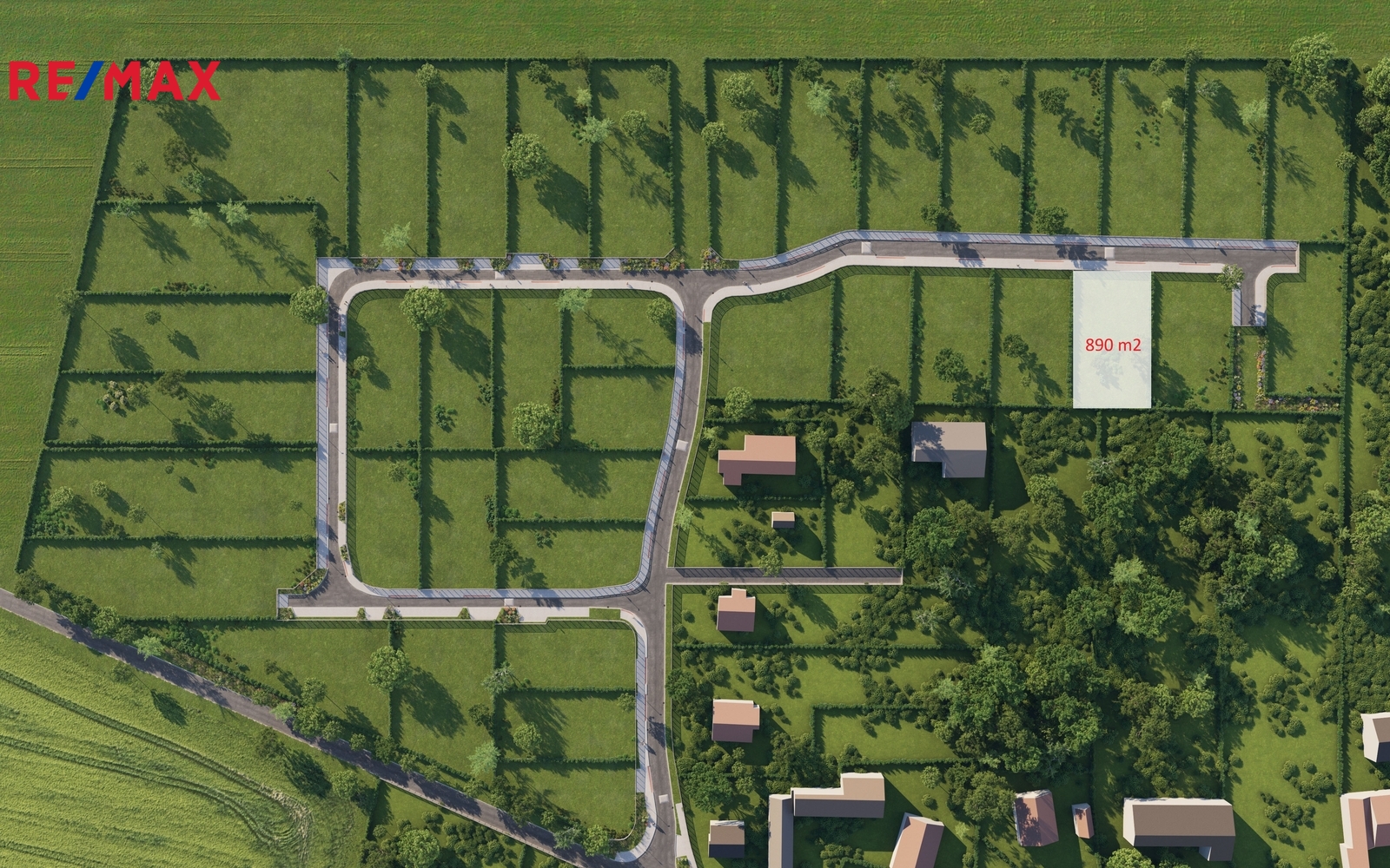K pozemkům jsou vybudovány příjezdové komunikace, chodníky, vjezdy a parkovací místa.