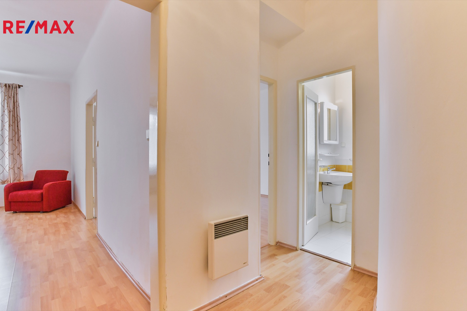 - dispozici tvoří dva průchozí pokoje, kuchyň s malou spíží, koupelna s rohovou vanou a toaletou