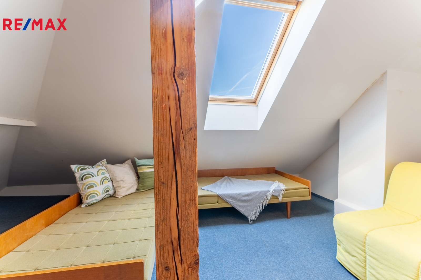 - samostatný podkrovní pokoj (15,5 m²) s přístupem na půdu