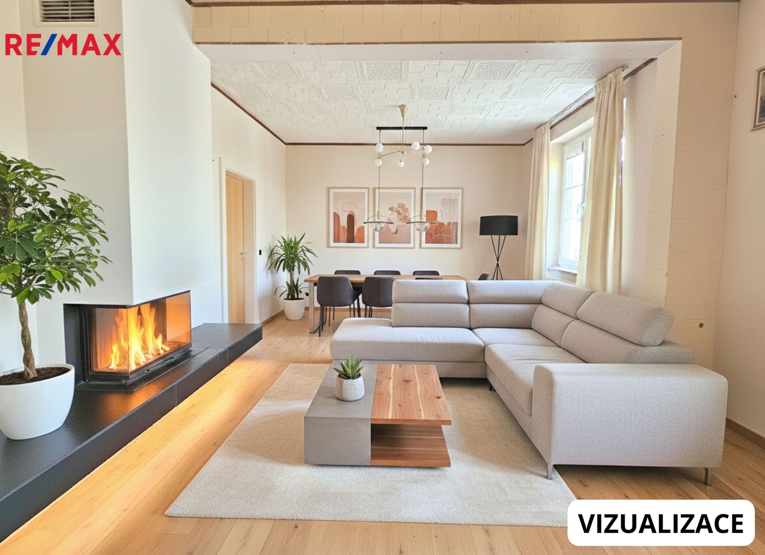 Dům je v původním stavu a proto přikládáme pro inspiraci vizualizaci možného uspořádání vnitřních prostor.
