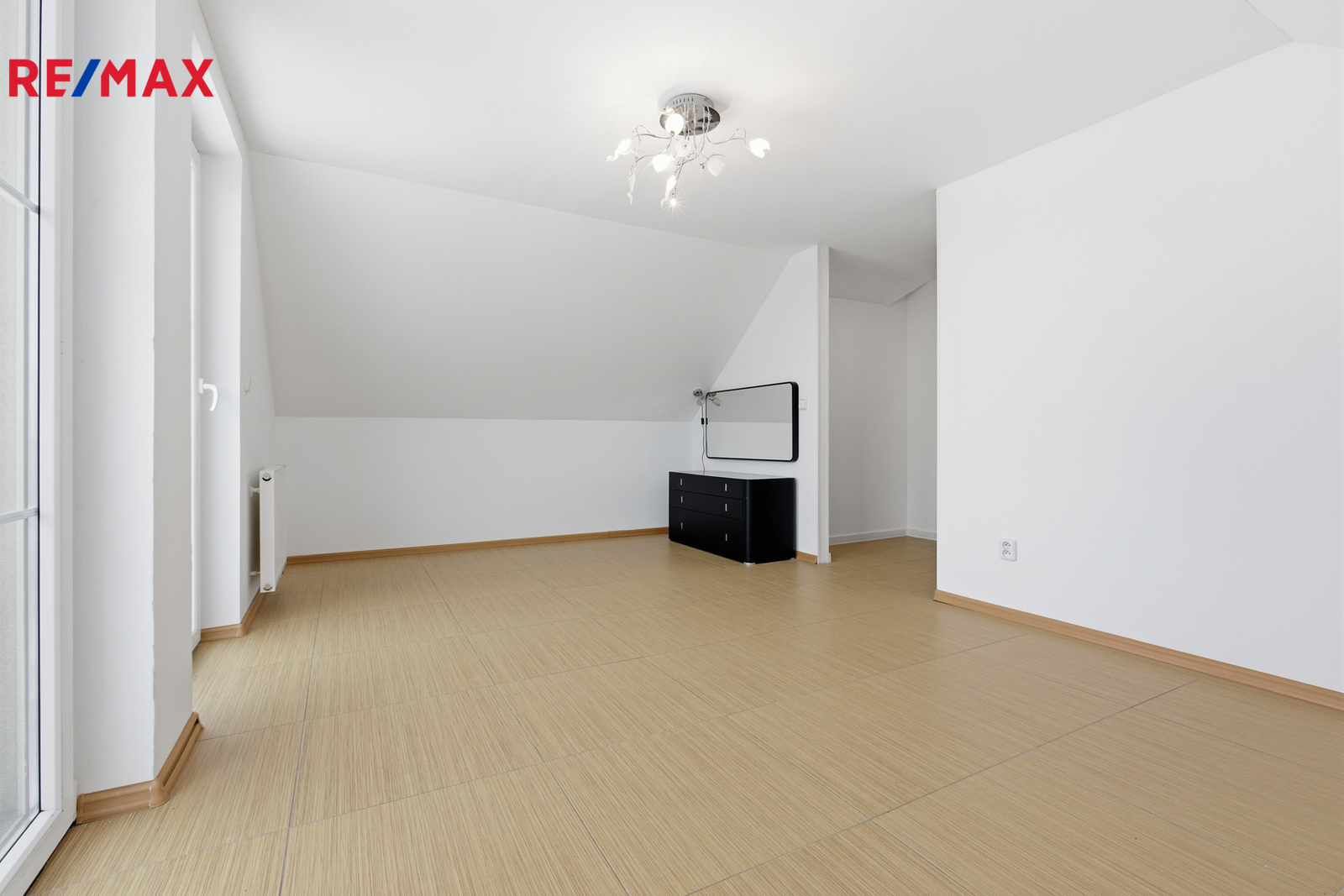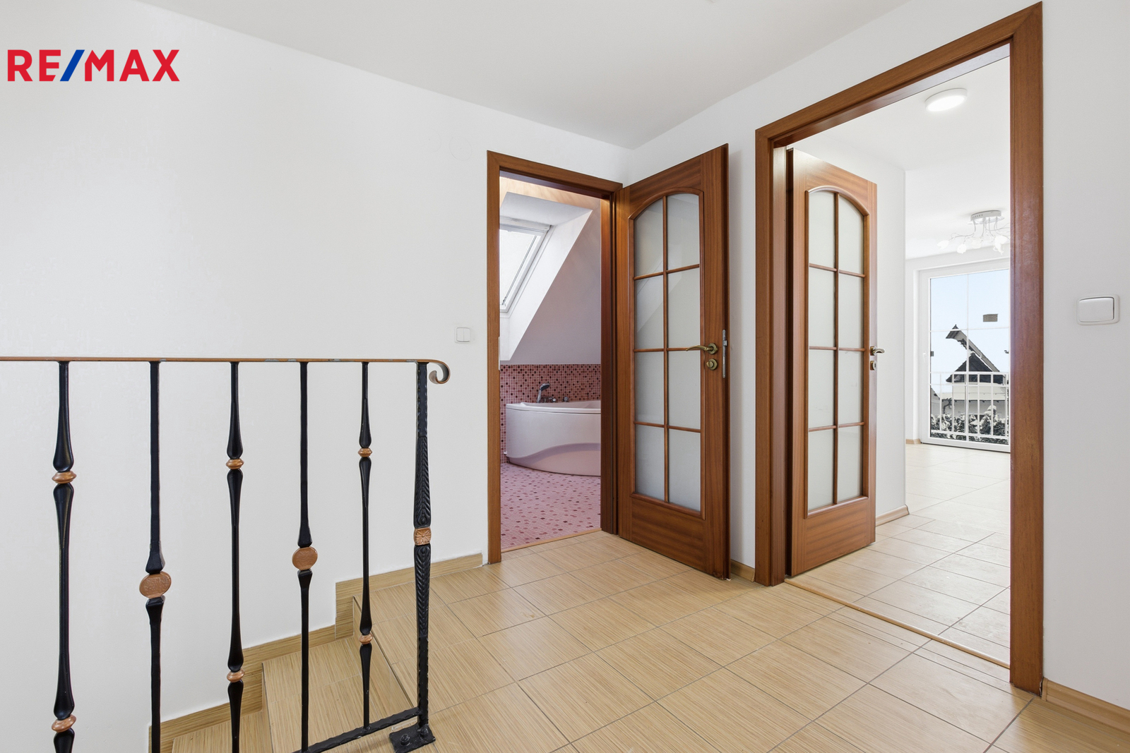 Patro: tři světlé ložnice a koupelna s vanou.
