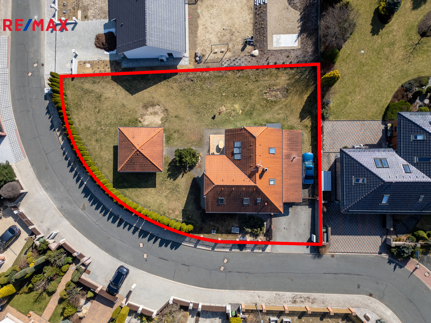 -Plně oplocený pozemek s vysokými tujami, které vytvářejí přirozenou zeď a zajišťují maximální soukromí.