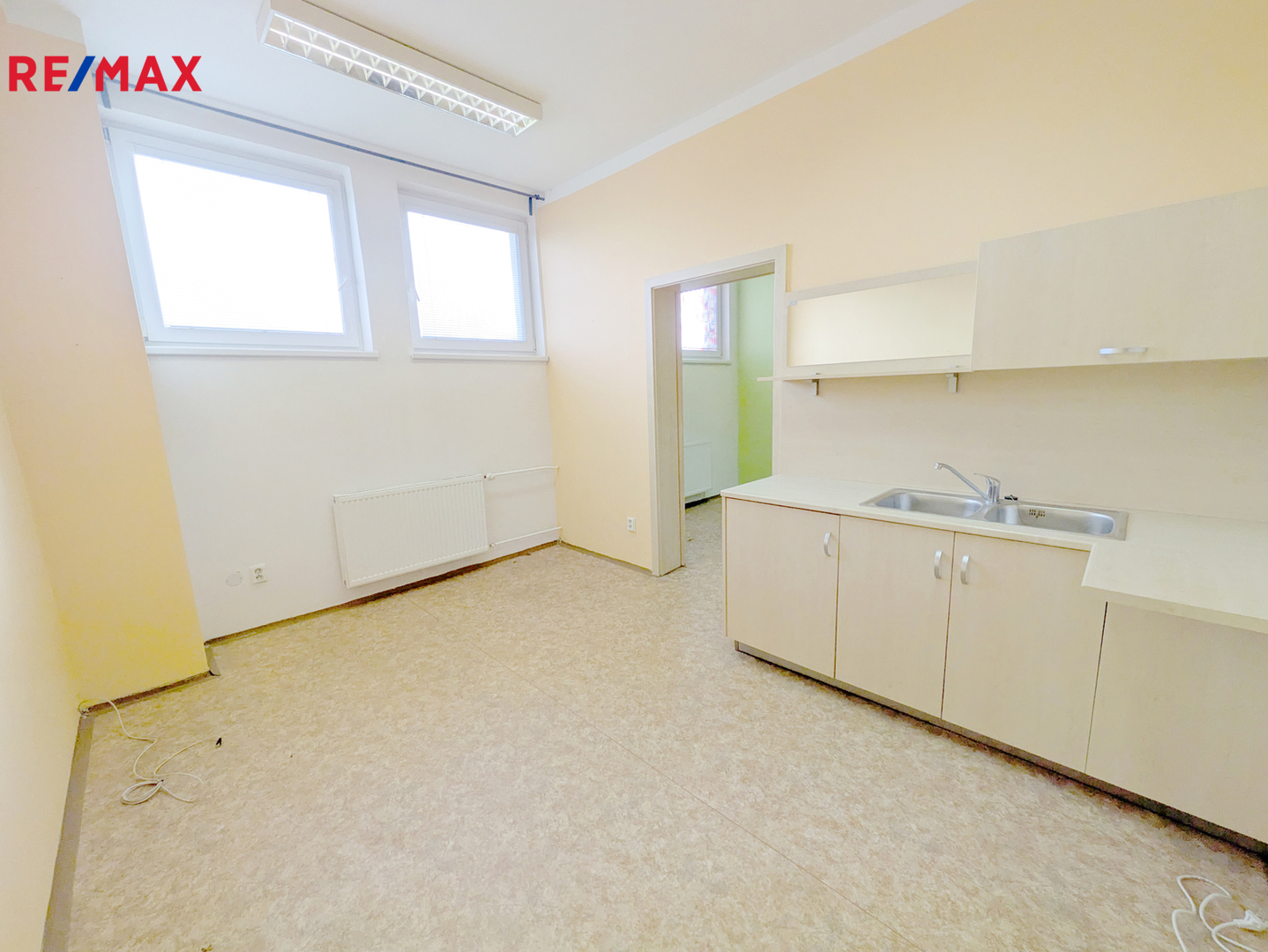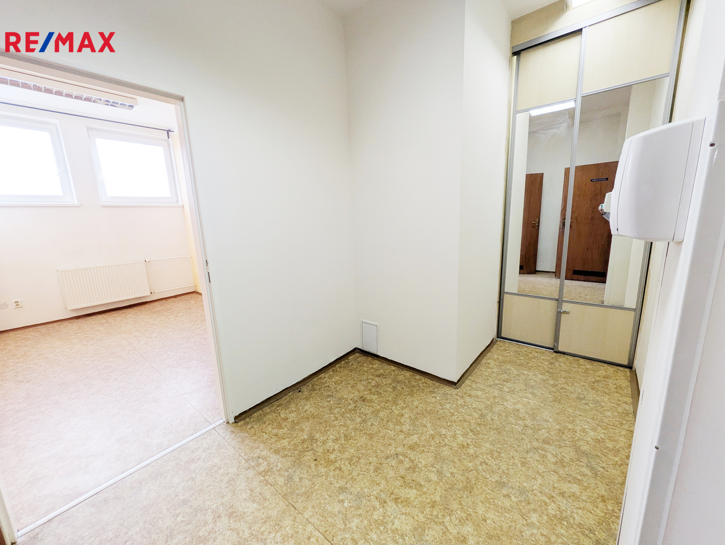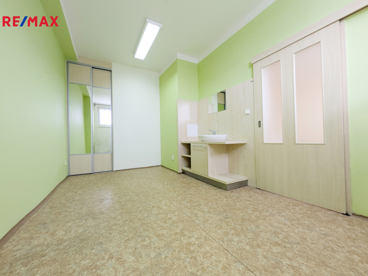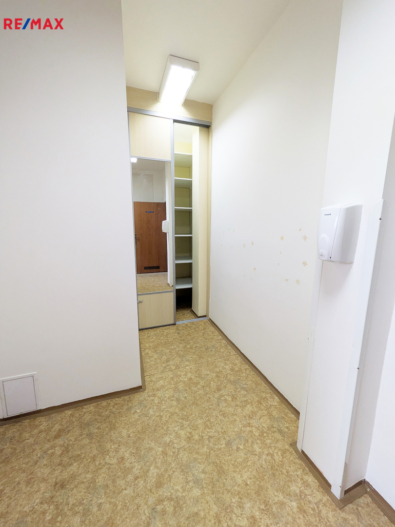 Prostory k pronájmu jsou rozděleny na několik menších místností - vstupní chodba ve které je odkládací prostor, dále procházíte do místnosti s kuchyňským koutem a třetí místnost s umyvadlem a další skrytou šatnou. Prostory jsou ideální pro masáže, kosmetiku nebo jiné služby.