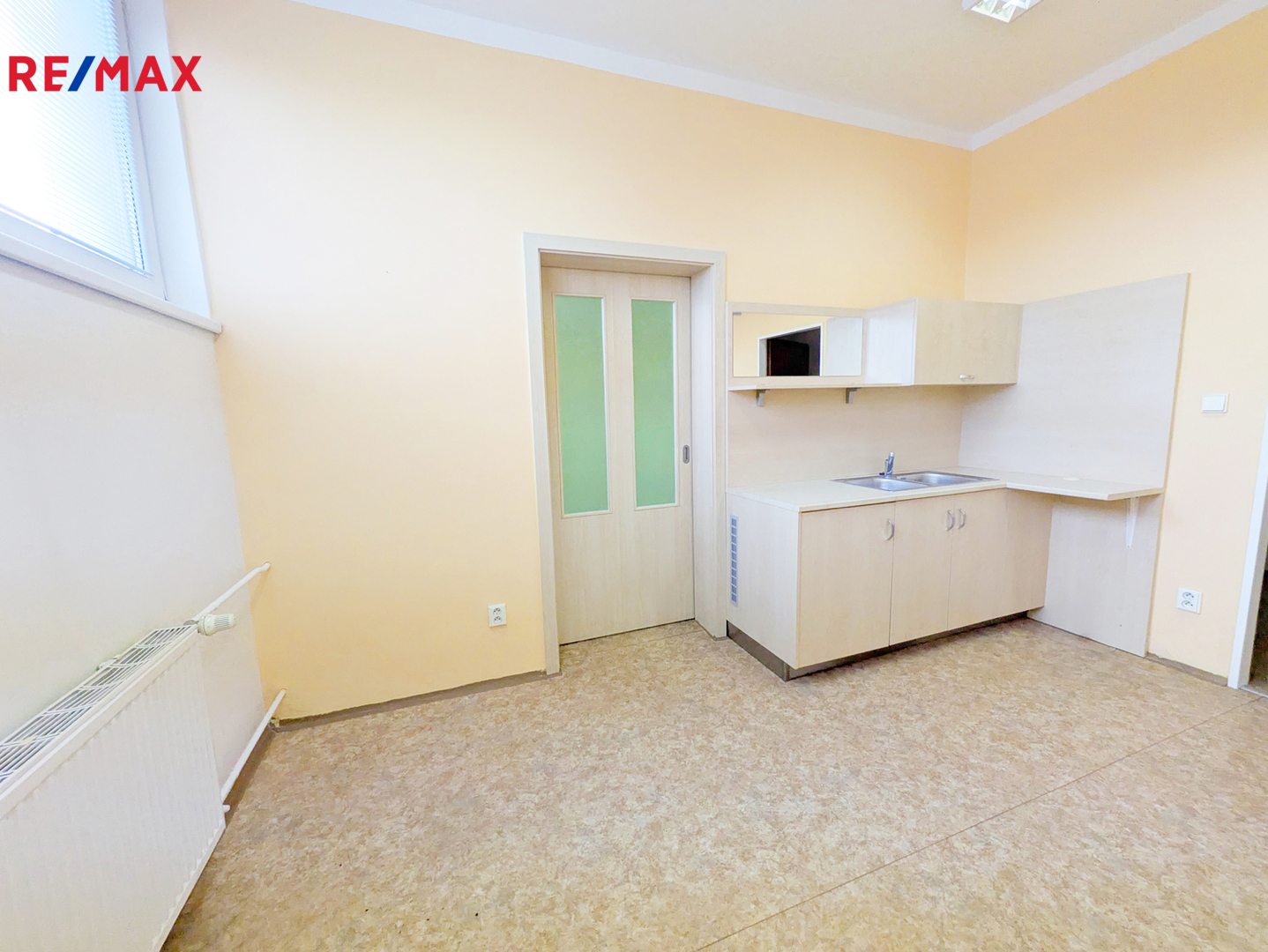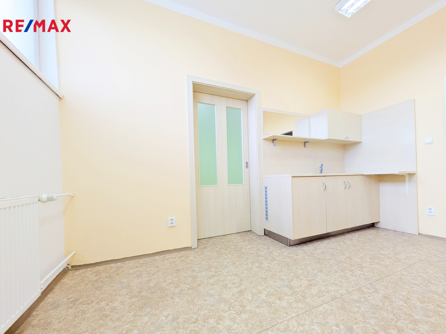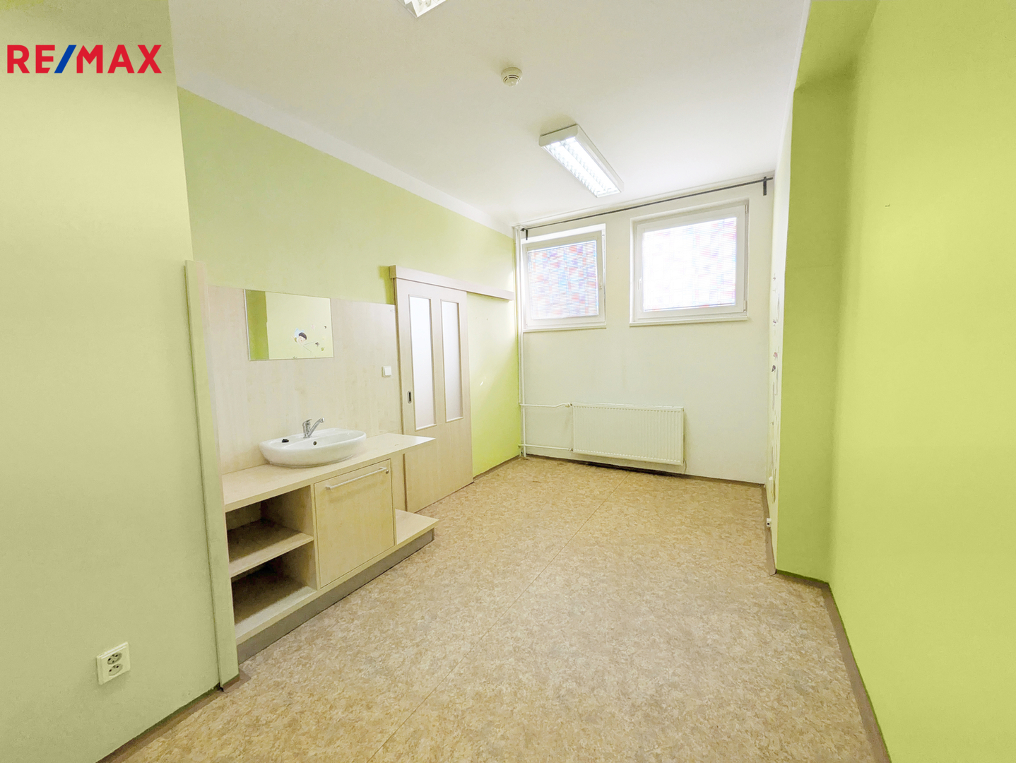 Prostory k pronájmu jsou rozděleny na několik menších místností - vstupní chodba ve které je odkládací prostor, dále procházíte do místnosti s kuchyňským koutem a třetí místnost s umyvadlem a další skrytou šatnou. Prostory jsou ideální pro masáže, kosmetiku nebo jiné služby.