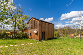 Interiér byl navržen velmi vkusně, elegantně a prakticky. Použité materiály kombinují přírodní dřevěný obklad fasády, velkoformátová okna na čelních stranách a střechu pokrytou kvalitním bonnským šindelem. Objekt je možno využívat víkendově, pro dlouhodobé relaxační účely nebo je možné chatu využívat k investičním účelům. Koupání je vzdálené jen pár kroků.