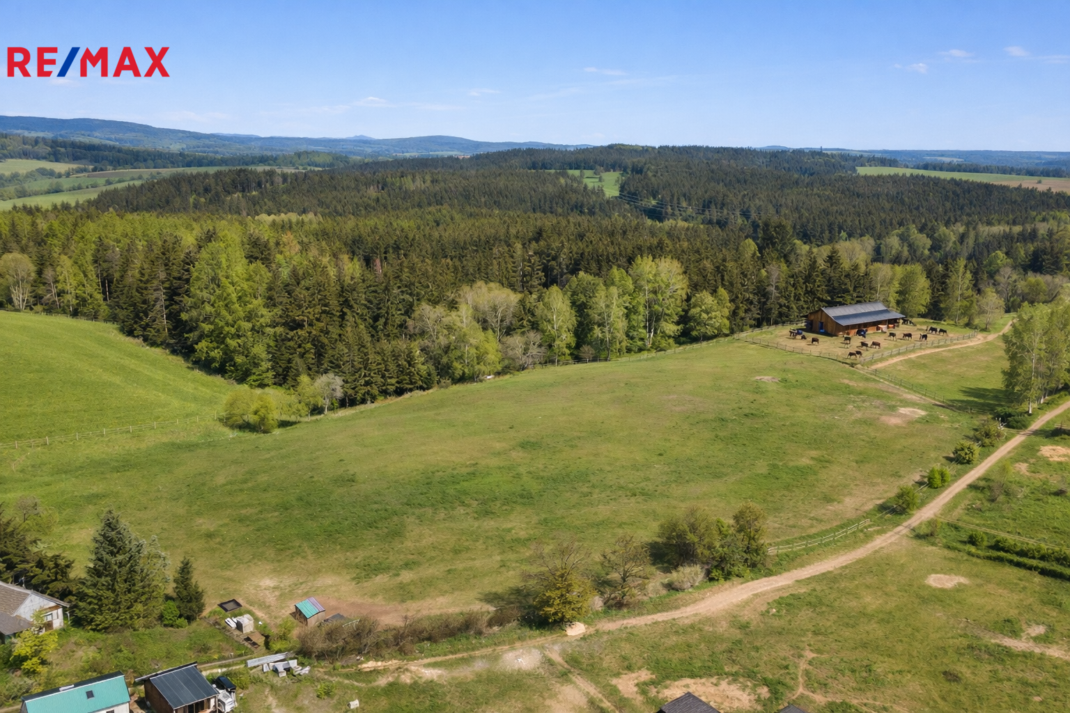Téměř 2 ha plochy: Pro koně, ovce, kozy nebo jiné hospodářství.