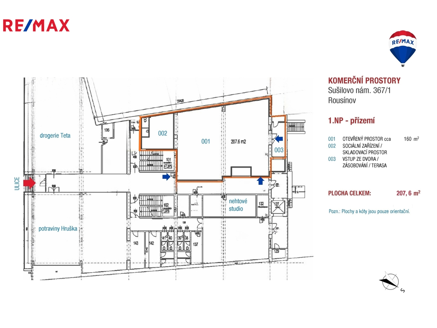 Nabízíme Vám pronájem nebytových prostor o celkové výměře 208 m2 v polyfunkční budově přímo u hlavní silnice. Jednotka se nachází v přízemí s každodenním provozem a pohybem osob.