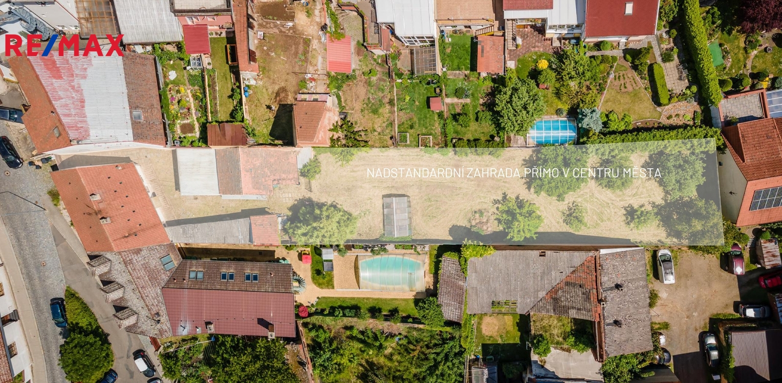 K domu náleží cca 700 m2 velká krásná zahrada, na které máte naprosté soukromí. Na zahradě se nacházejí ovocné stromy, skleník a zeleň. Na pozemku se dále nachází dílna se zastavěnou plochou cca 40 m2, přístřešek (cca 30m2) a menší chlívky. Pokud toužíte po bydlení v historickém centru města s krásnou zahradou, tak budu rád, když mě budete kontaktovat.