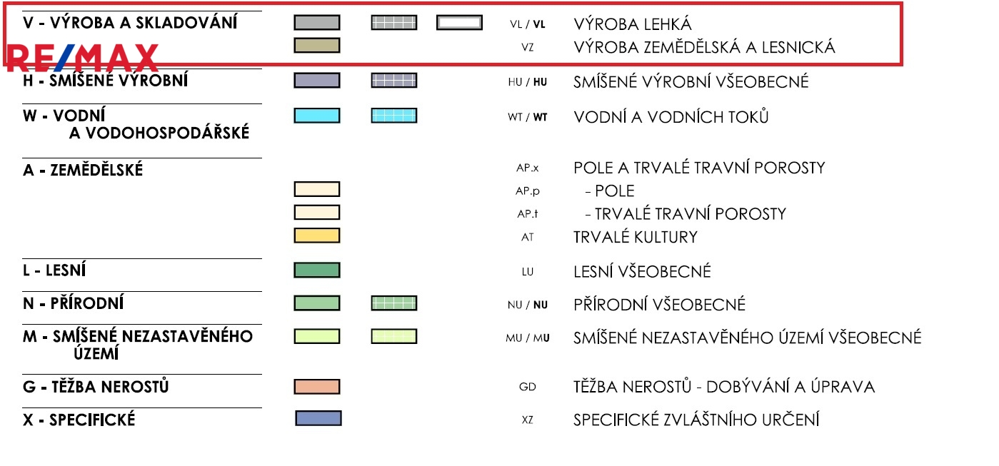 Hlavní využití: Bydlení doplněné nerušícími funkcemi s vyšším podílem hospodářské složky (zemědělská a řemeslná výroba).