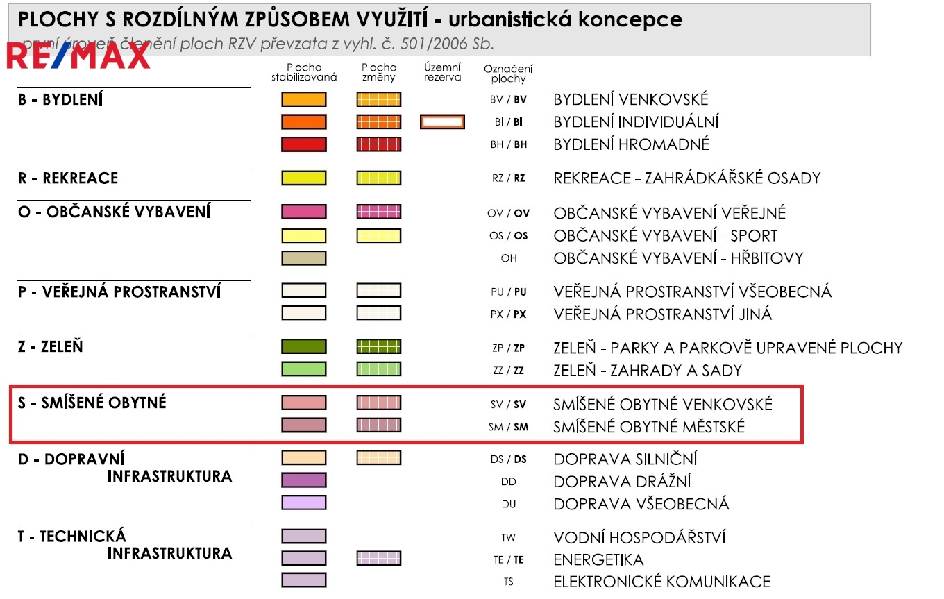 Nemovitost je dle ÚP určena pro bydlení s vysokým podílem hospodářské složky. To investorovi umožňuje realizovat široké spektrum projektů bez nutnosti zdlouhavých změn v územním plánování: