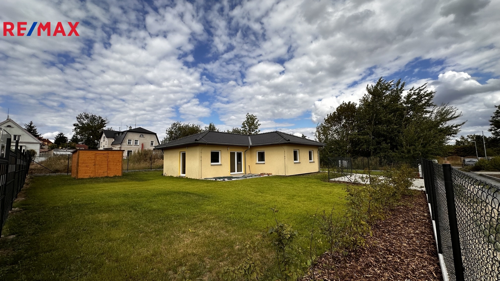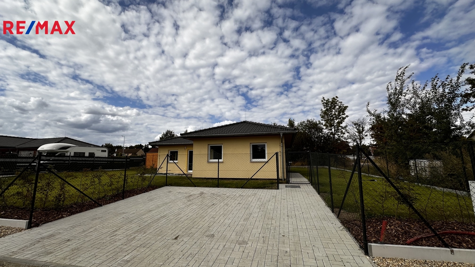 Z obývacího pokoje je vstup na terasu a do zahrady, která se bude v současné době realizovat a nabídne tak novým nájemcům příjemně strávené chvilky v zeleni. Dále jsou v domě dva dětské pokoje a ložnice. Vytápění domu zajištuje tepelné čerpadlo Samsung, obložky a dveře jsou od značky Ercado.