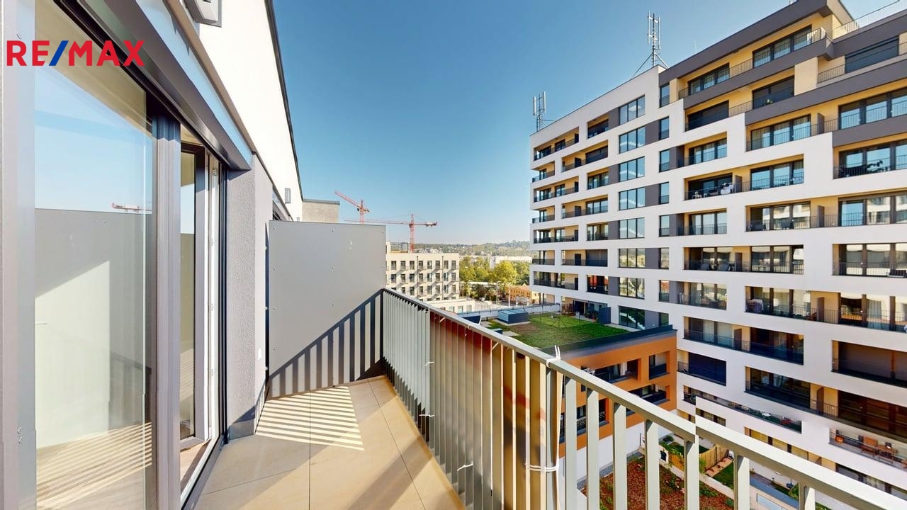K bytu náleží prostorná lodžie o velikosti 5,6 m2, s krásnými výhledy do okolí (vzhledem k umístění v 5. patře). Dále jistě oceníte vlastní parkovací stání přímo v domě - v podzemní garáži. Součástí bytu je i prostorný zděný sklep (4m2) pro uložení sezonních věcí, jako jsou lyže či kola. Také je k dispozici společná kočárkárna/kolárna.