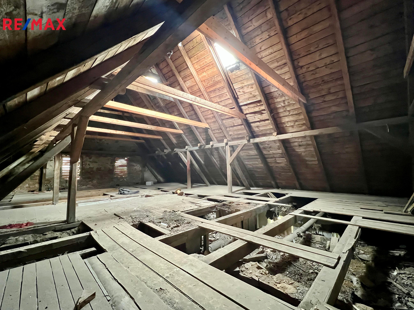 Tento velký rodinný dům je tvořen dvěma patry, prostorným podkrovím a sklepem (částečně podsklepeno), na který je zpracována studie s možností přestavby na vybudování celkem 9 bytů (každý o výměře od 46 do 57 m2 - viz. fotogalerie), dle představ nového investora. Na pozemku se nachází garáž s dílnou a jímka.