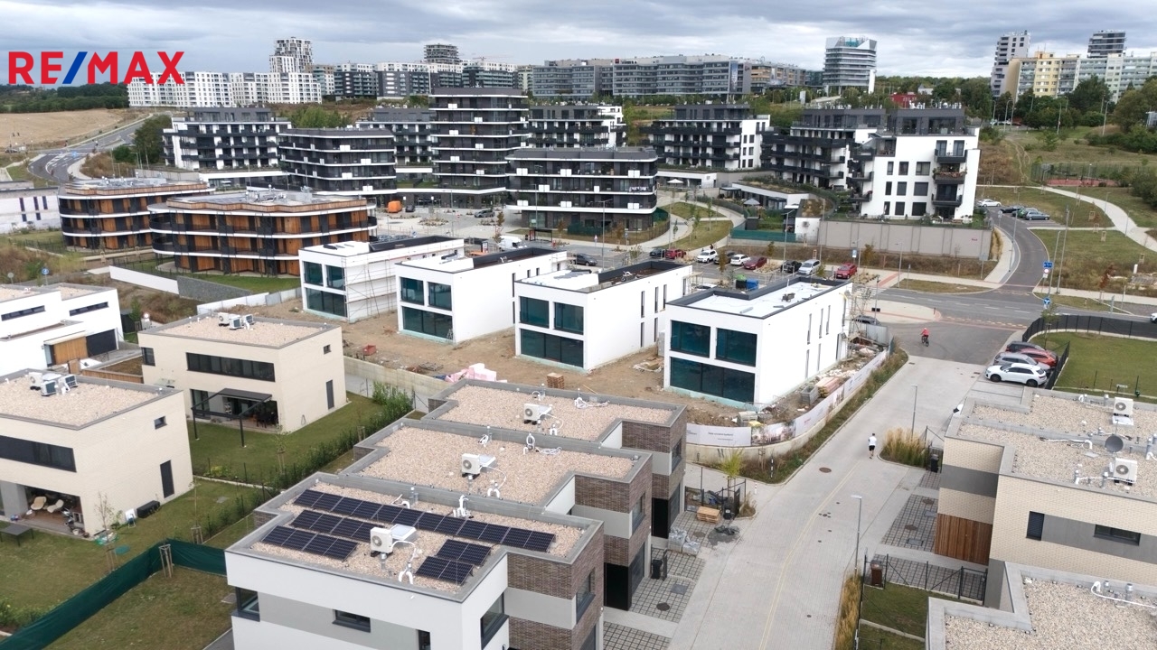 Domy se staví v nejvyšším standardu – monolitická železobetonová konstrukce, hliníková okna s trojsklem, venkovní žaluzie, podlahové vytápění napojené na tepelné čerpadlo, příprava na fotovoltaiku, klimatizaci i wallbox pro elektromobil.