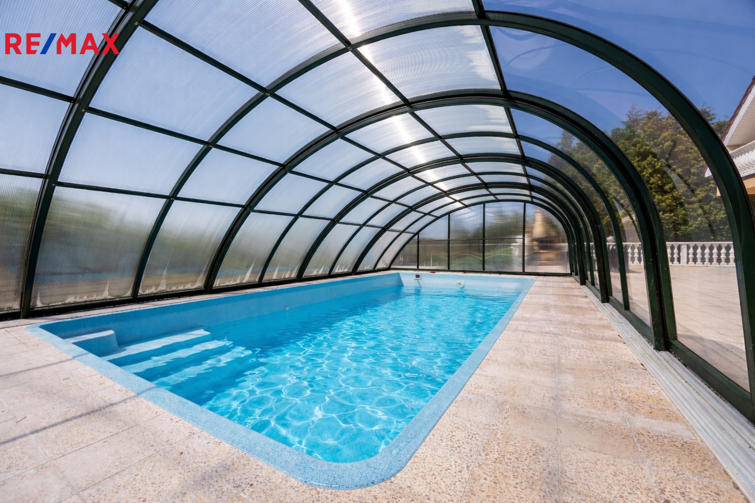 Moc hezký mírně svažitý pozemek o celkové ploše 1 845 m2 se dále nachází místo pro parkování dvou – tří aut přímo před domem. Velkou výhodou je, že se zde nachází zastřešený bazén, vlastní jezírko a několik vzrostlých stromů a keřů.