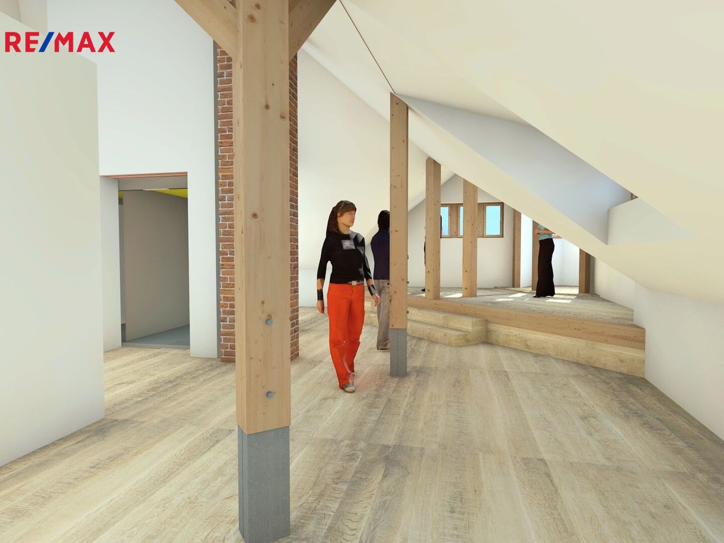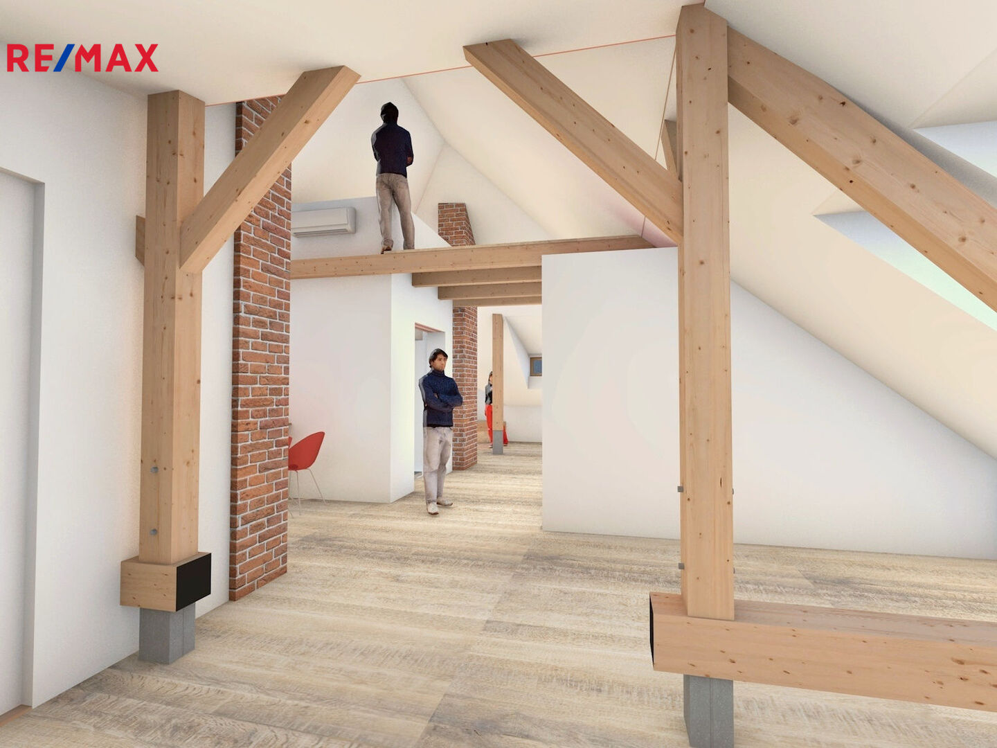 Celkově jsou tyto prostory jsou velmi zajímavě řešeny s původními prvky - trámy a nabízí se tak budoucím klientům např. jako prostor ke kancelářím, nebo ateliér pro architekta, nebo ateliér pro malíře, fotografa atd.