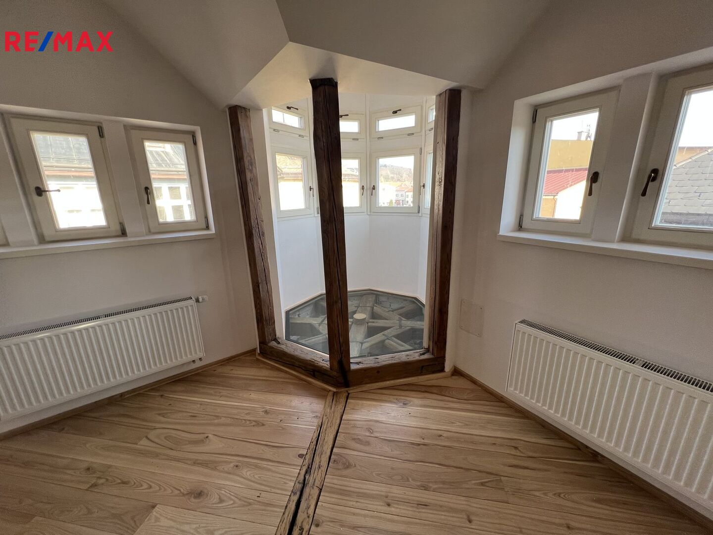 Nadstandartní prvek v nemovitosti je věžička s výhledy a vyvýšeným podsvětleným pódiem z masivního dřeva ,takže pokud si tam umístíte pracovní stůl, můžete sledovat dění přímo v centru města.