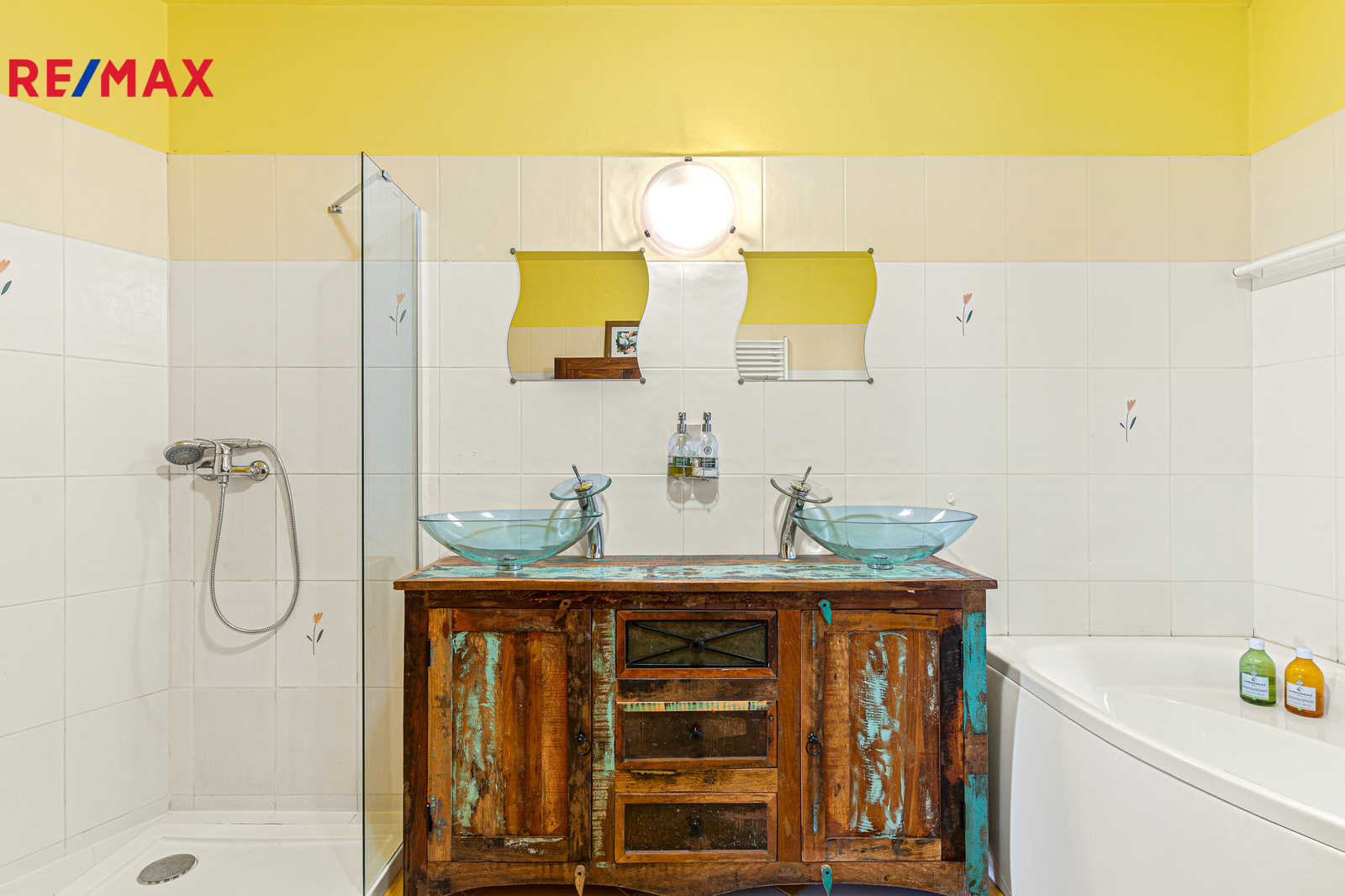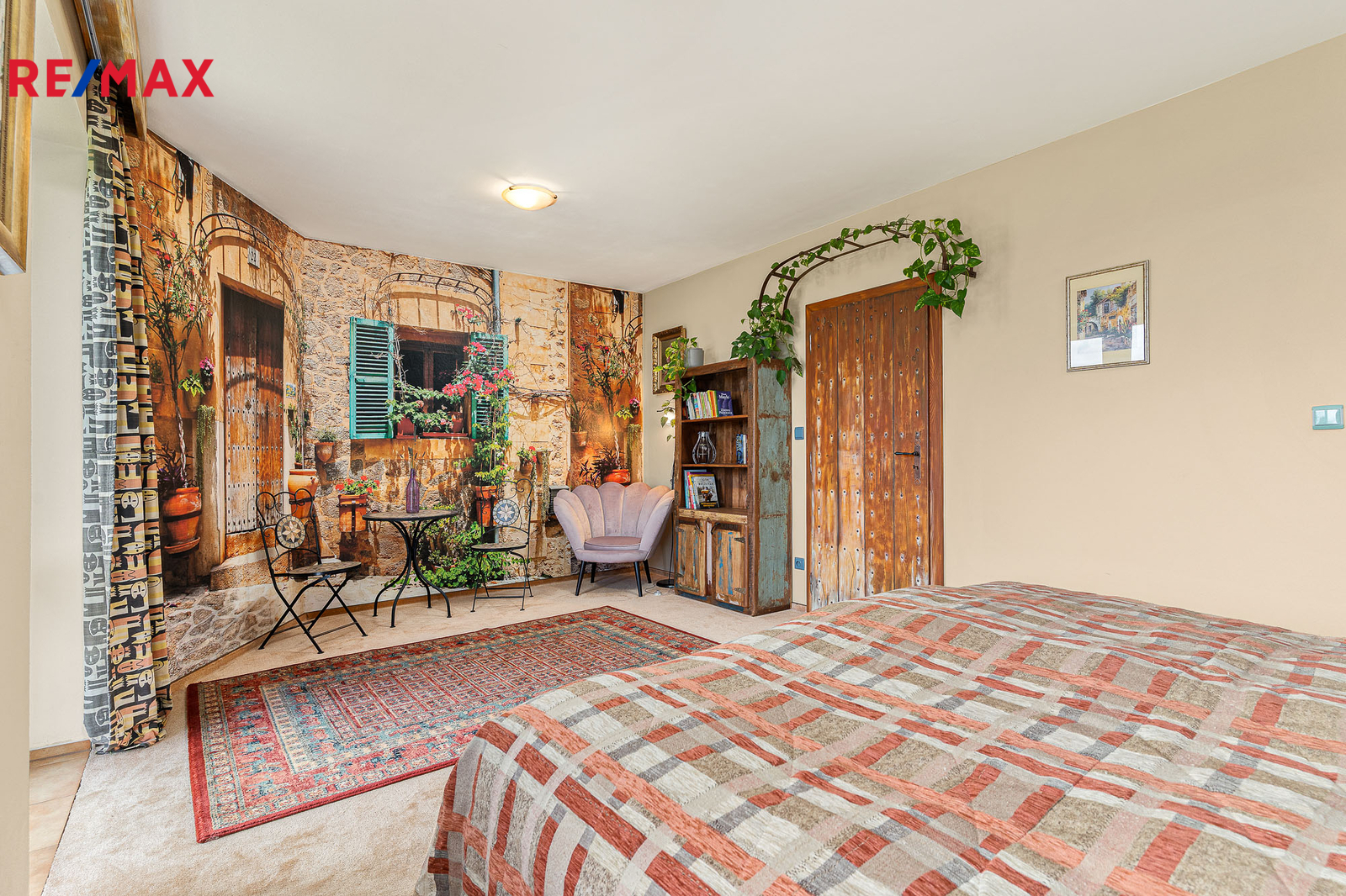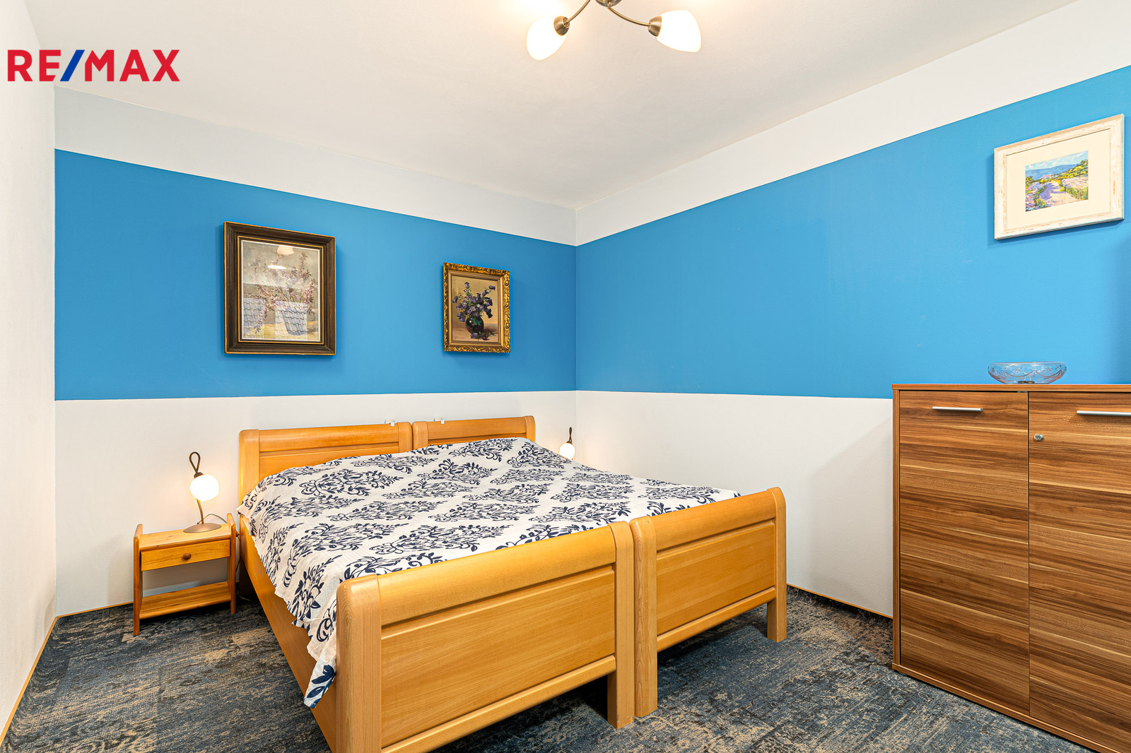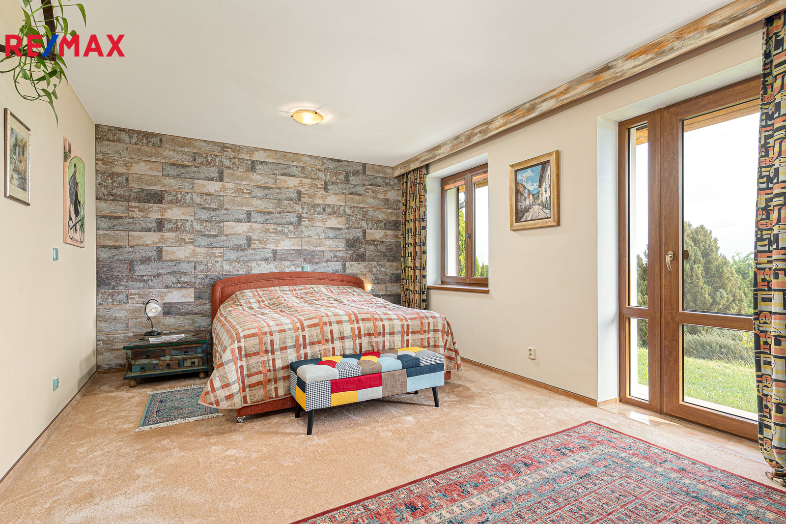 Další ložnice s vlastní koupelnou s WC je přístupná z chodby domu nebo také samostatným vchodem a vlastním zádveřím s úložným prostorem – ideální pro hosty, klienty, jako soukromé studio nebo provozovna.