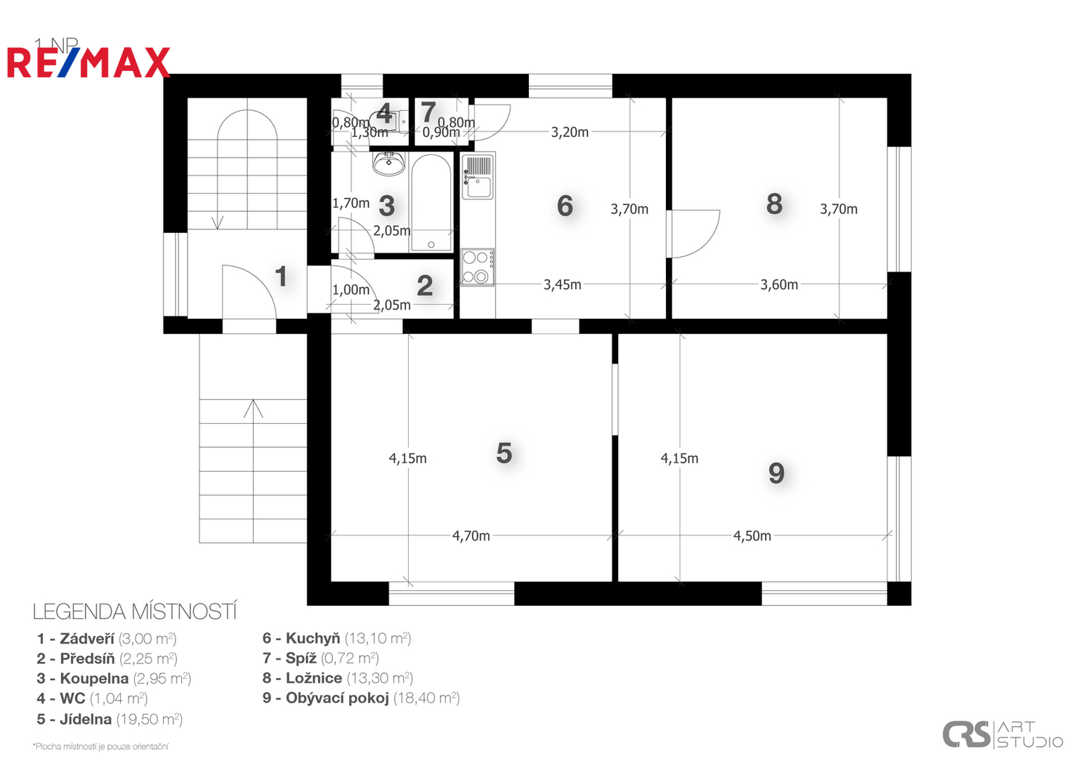 Dům je ve velmi dobrém stavu se dvěma byty na jednotlivých patrech. Byty jsou velikosti 2+1 a 3+1. Jednotlivé pokoje jsou velmi vzdušné a vytváří dojem velmi prostorného bytu. Dispozice domu zahrnuje ve dvou podlažích jak samostatné byty, tak společné prostory, což zajišťuje dostatek soukromí i prostor pro vzájemné setkávání.