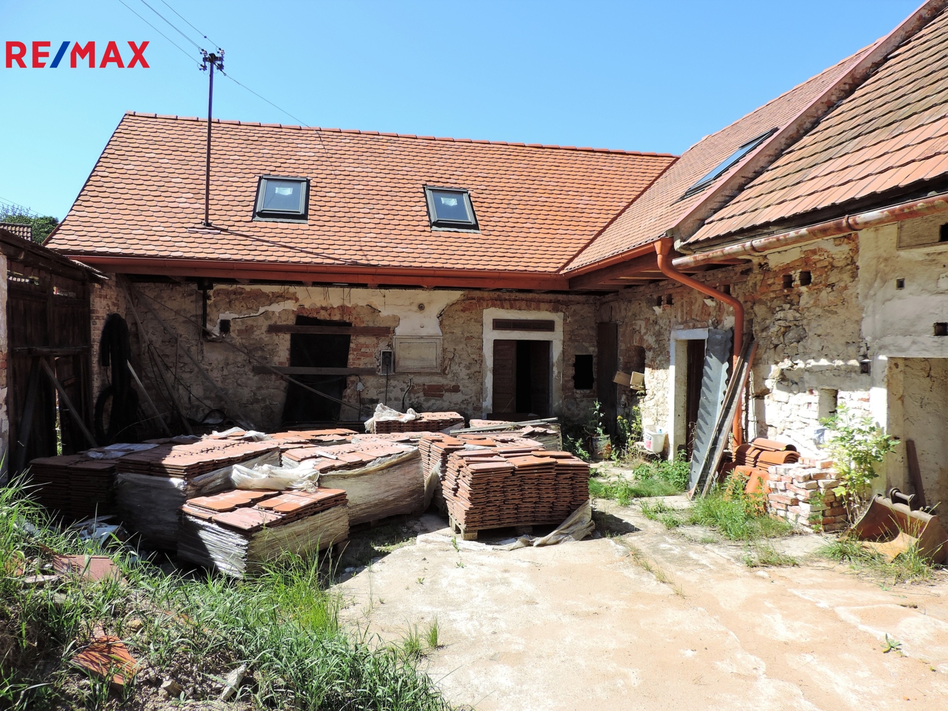 Velkou výhodou je nová střecha nad obytnou částí, která výrazně snižuje budoucí investice a poskytuje pevný základ pro další úpravy.