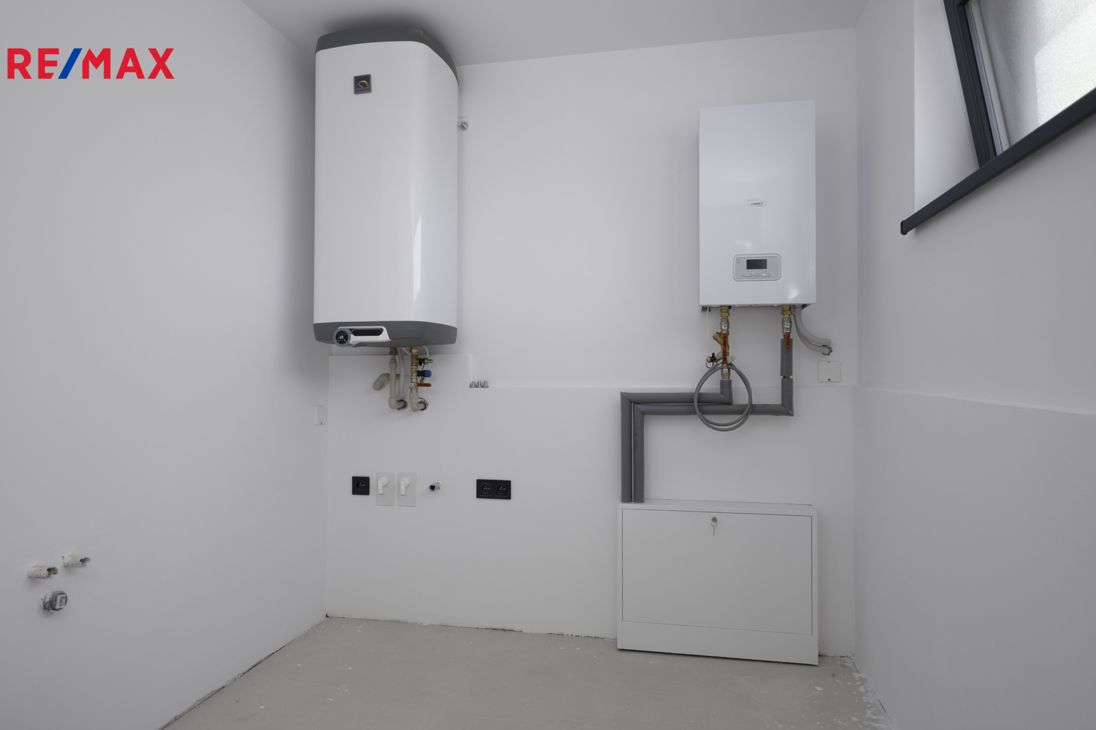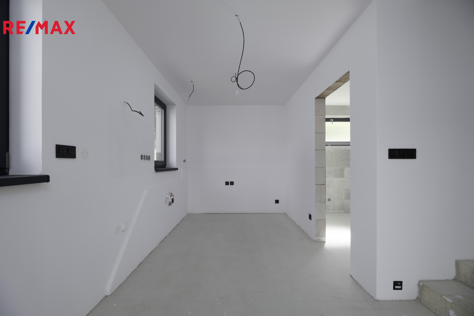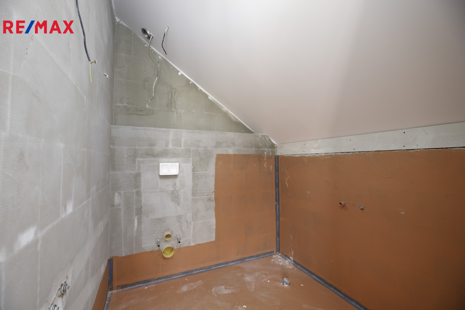 - Přízemí s prostorným obývacím pokojem a kuchyňským koutem (příprava na myčku i dřez), koupelna s přípravou a možností sprchy či vany, samostatného WC. Praktická technická místnost je již vybavenou elektrickým kotlem, bojlerem, elektrickým rozvaděčem, rozvody k vodovodnímu podlahovému vytápění a přípravou na WC.