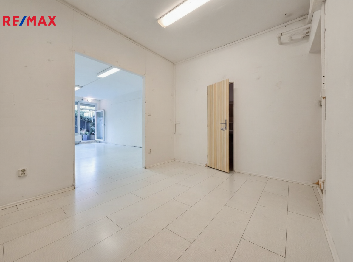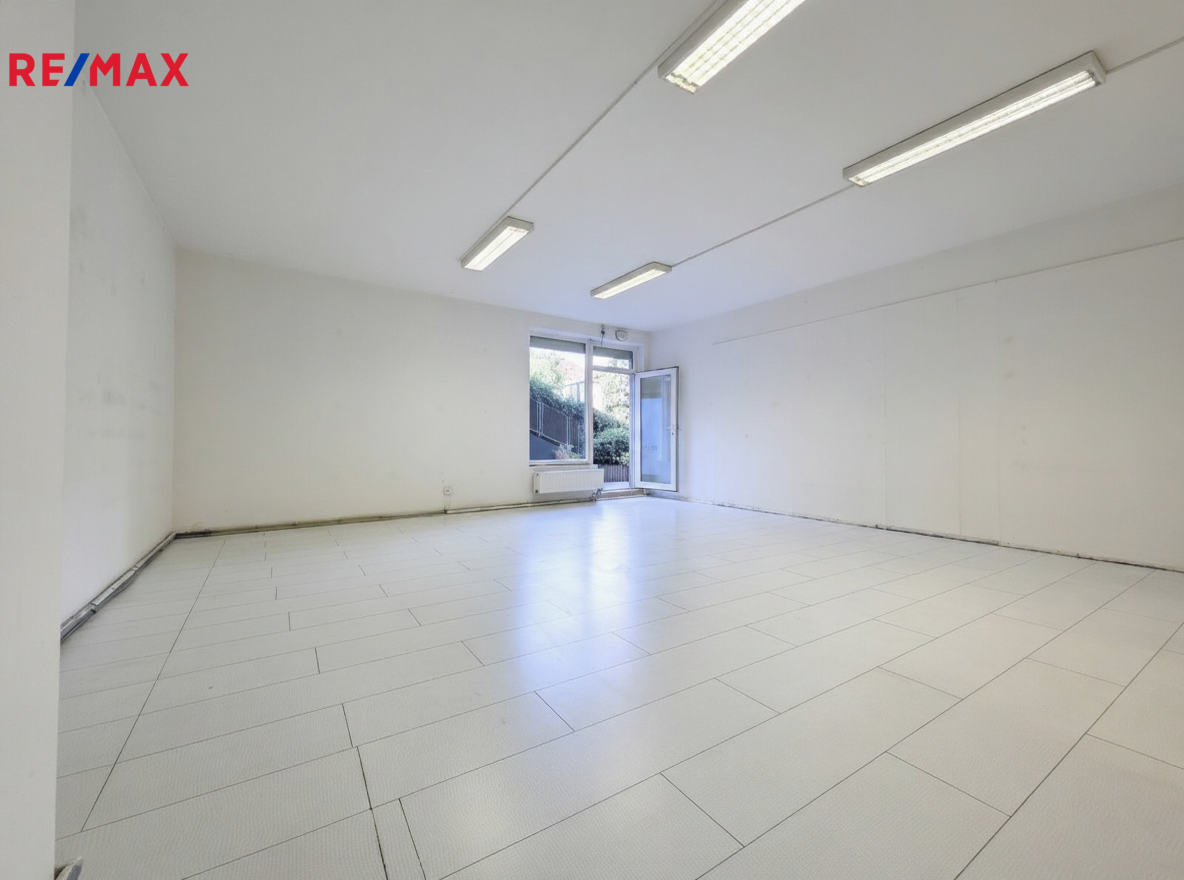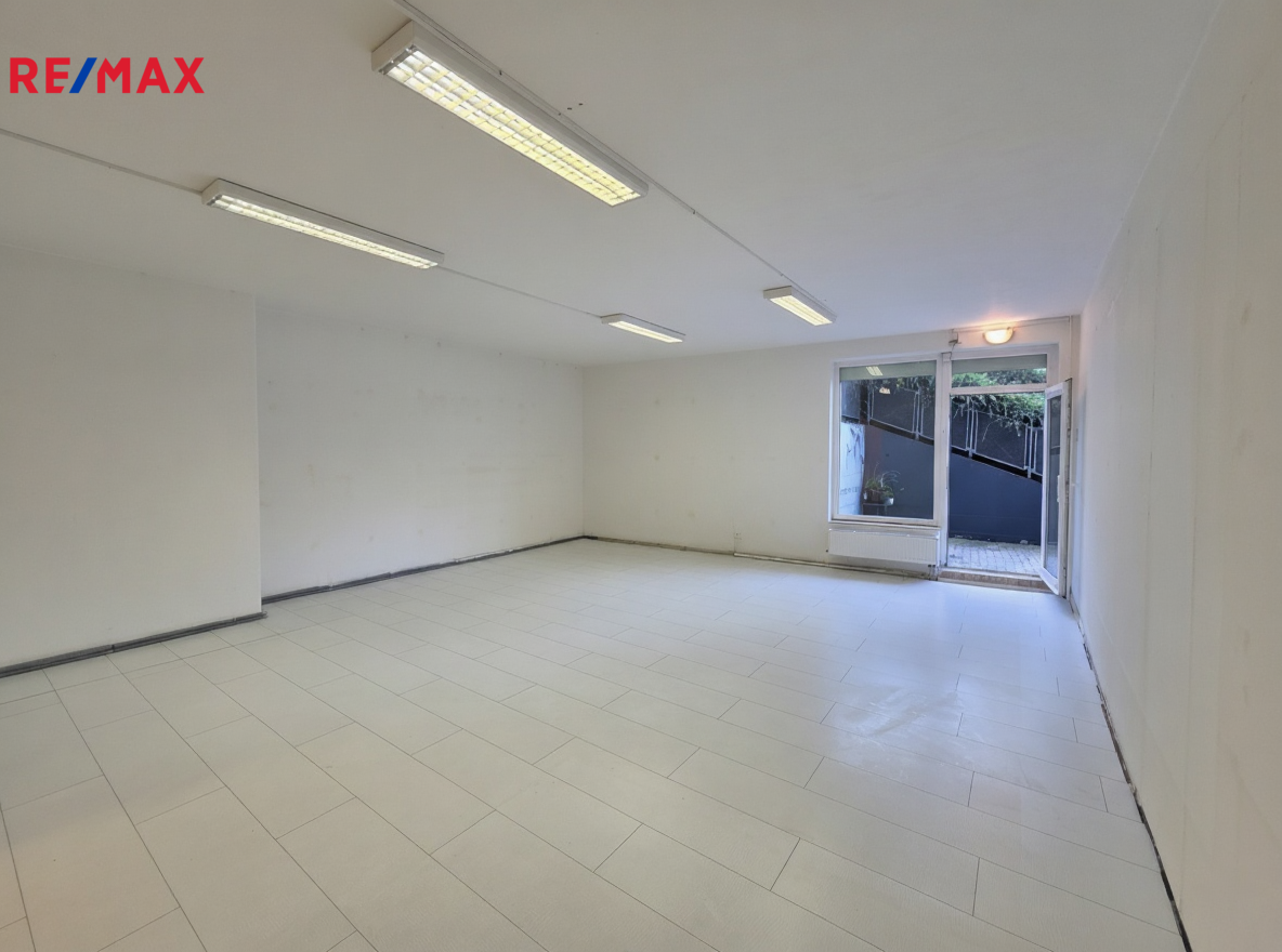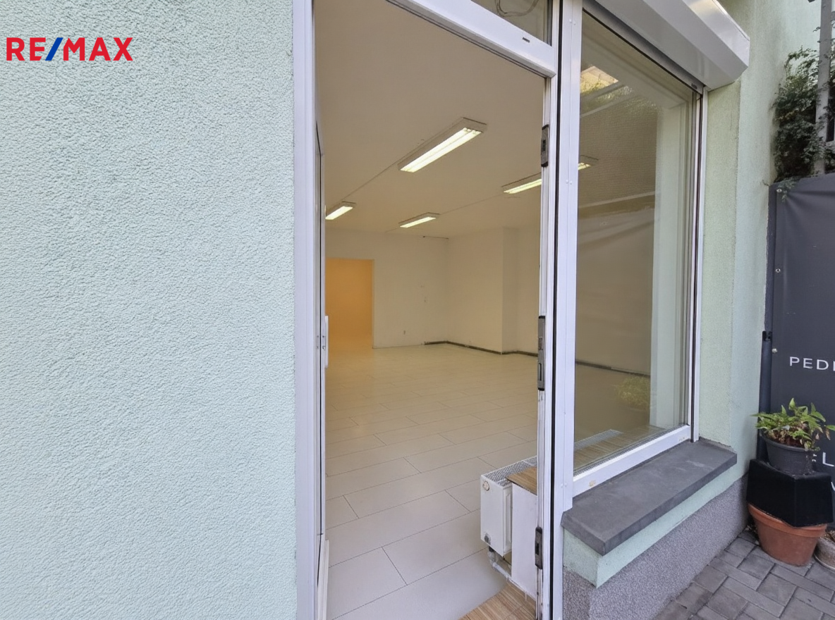 Výloha je osazena elektrickou bezpečnostní roletou značky LOMAX a celý prostor je vybaven bezpečnostním alarmem. Před vstupem lze vybudovat menší venkovní posezení nebo zahrádku, což rozšiřuje možnosti využití. Jednotka je vhodná pro širokou škálu podnikatelských záměrů – od obchodu a showroomu přes kancelář až po provozovnu služeb či menší gastronomii.