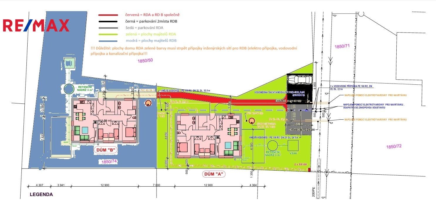 Vnitřní omítky jsou hladké s dostatečným množstvím zásuvek, přípravou na kamerový systém, wi-fi a elektrické venkovní kamery. V ceně jsou dále zahrnuty, kromě vybavení technologiemi v technické místnosti, veškeré přípojky – voda, kanalizace, elektro. Je zde vybudováno parkování pro dvě auta, chodníky a terasa ze zámkové dlažby a jsou provedeny terénní úpravy včetně zasetí trávy.