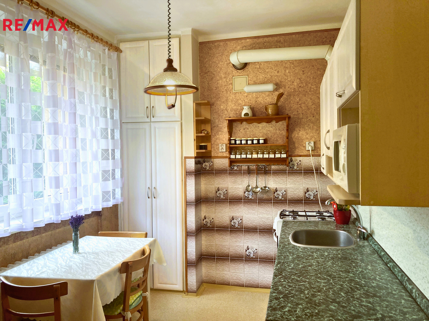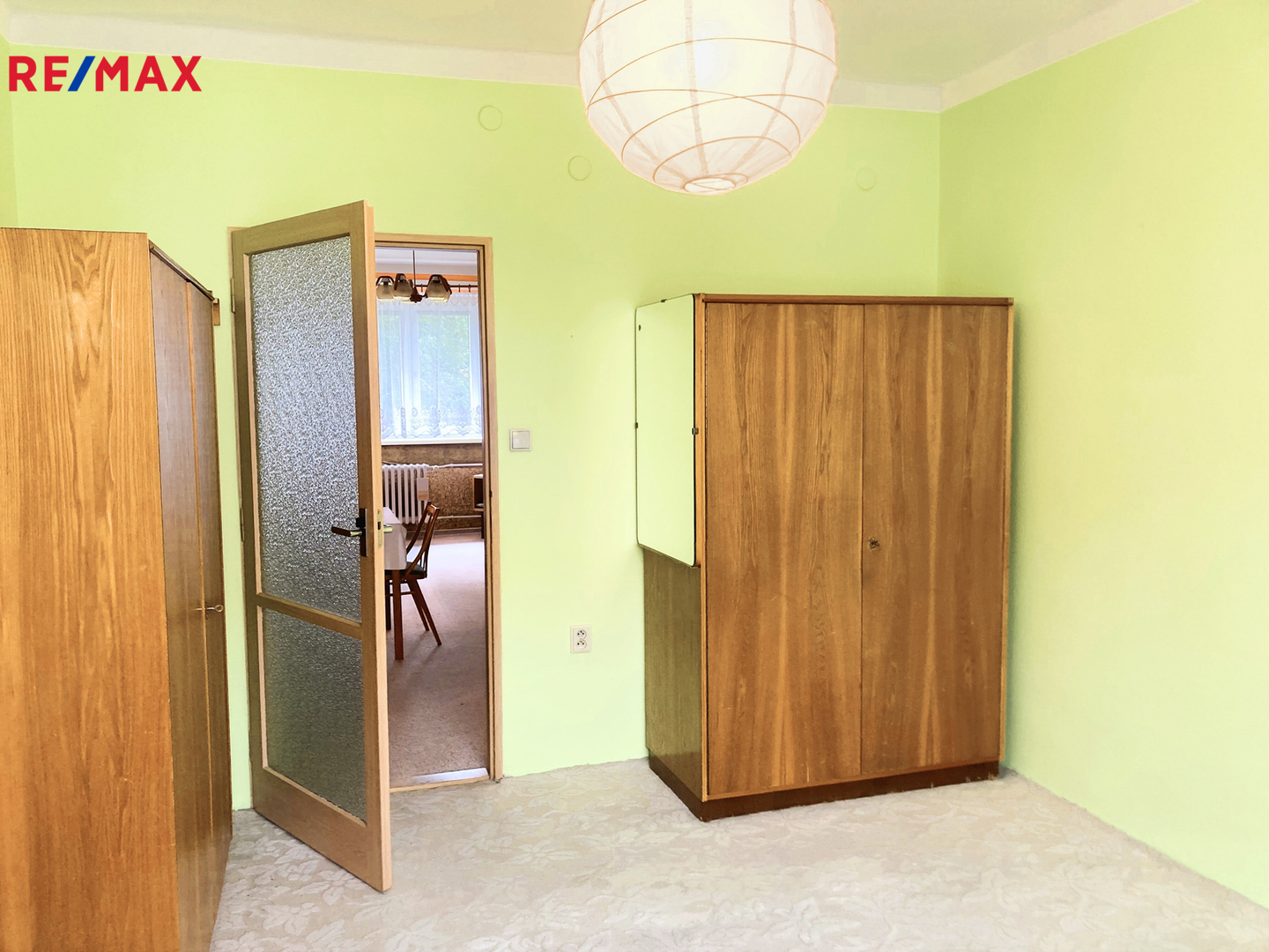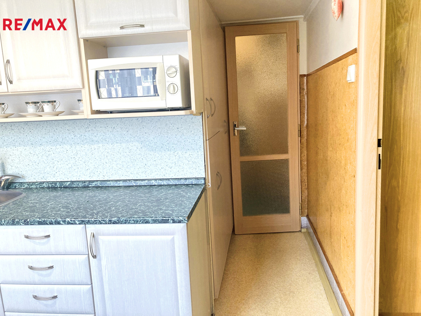 Interiér bytu se skládá ze vstupní chodby s praktickými vestavěnými skříněmi, které poskytují dostatek úložného prostoru. Kuchyně je vybavena kuchyňskou linkou a nechybí ani malá spíž pro uskladnění potravin. Prostorný obývací pokoj je přístupný z chodby, pokoje i ložnice.
