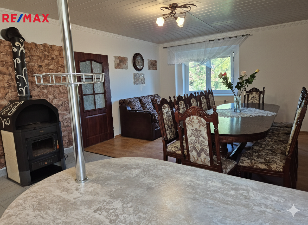 Tento dům o dispozici 3+KK je rozložen na třech podlažích a nabízí pohodlné bydlení pro rodinu i s možností rozšíření dispozice. V přízemí (1.NP) najdete prostorný obývací pokoj s krbovými kamny a kuchyňským koutem, ložnici, dětský pokoj, koupelnu s WC, prostor pro samostatné WC, komoru, technickou místnost (k rekonstrukci), chodbu s vysokým klenutým stropem, který dodává prostoru eleganci a terasu s výhledem do zahrady.