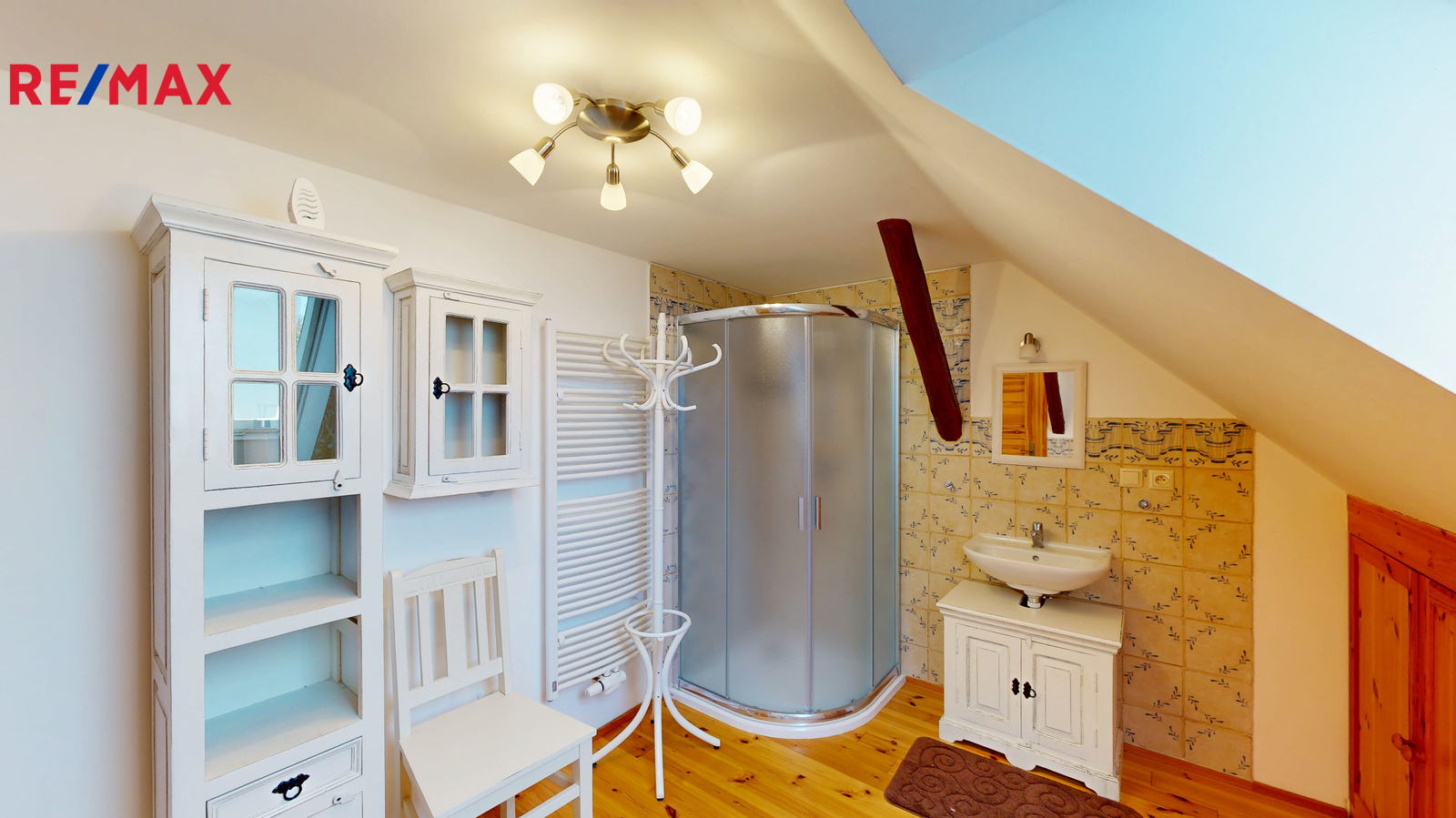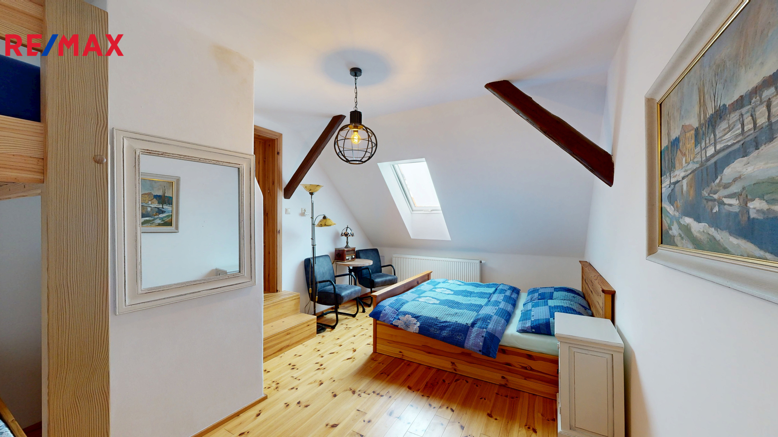 V podkroví ložnici s vlastní koupelnou. Dále je zde prostorná půda která umožnuje rozšířit podkroví o další obytný prostor.