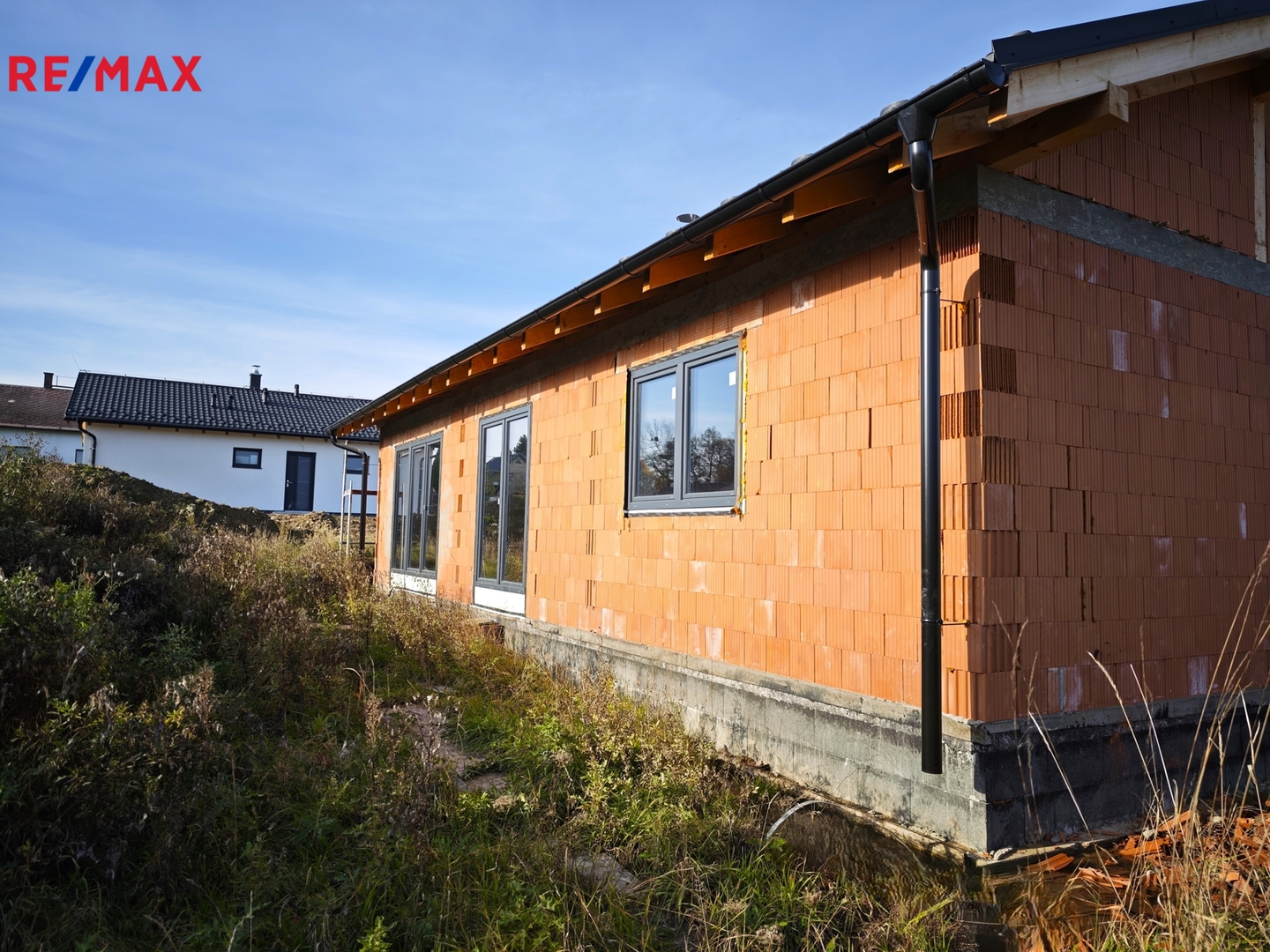 Přízemní stavba je pokryta sedlovou střechou, okna české výroby s trojsklem. Dům je novostavbou s moderními technologiemi, které zajišťují komfortní bydlení. Vytápění je řešeno tepelným čerpadlem typu voda-vzduch a krbem. Dále je dům vybaven klimatizací (4 ks, chladí+topí), je napojen na vodovod, odpad je řešen jímkou.