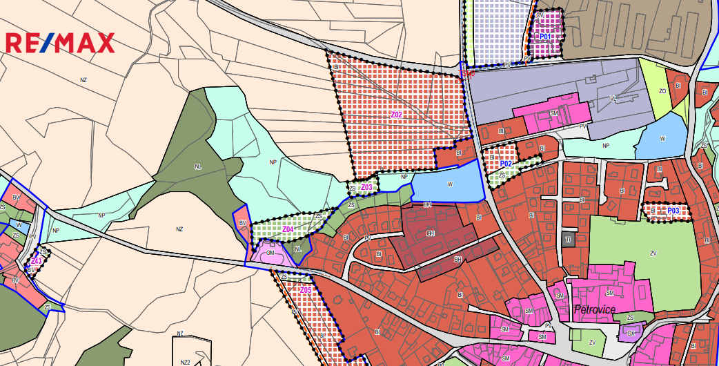 Nabízíme k prodeji soubor celkem devíti pozemků v obci Petrovice u Sedlčan o celkové rozloze 25 524 m². Z této výměry je přibližně 10 000 m² vedeno v územním plánu jako „BI – bydlení individuální“, tedy plocha určená pro výstavbu rodinných domů, vhodná jak pro individuální výstavbu, tak pro menší developerský projekt. Zbývajících přibližně 15 500 m² není v současné době zastavitelných, jedná se však o navazující pozemky, které rozšiřují prostor a představují zajímavý investiční potenciál do budoucna.