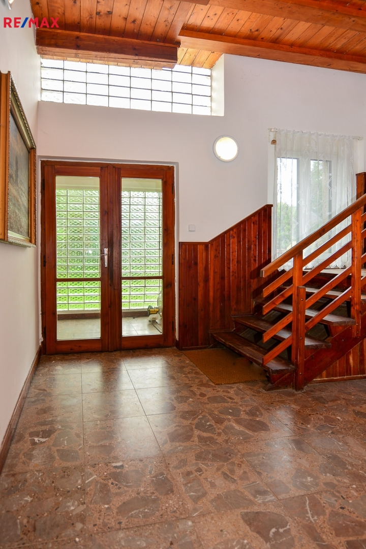 Jedná se o 3. podlažní rodinný dům ve struktuře: -1PP, 1. a 2.NP, 3.NP rozsáhlá zastavitelná půda na výši obytných místností, dřevěné zpracování obkladů vč.stropu a schodiště s ochozem v hale. Předsíň, prostorné chodby, vstupní hala. Dům je prosvětlený okny a vzdušný. Střecha v ideální poloze na solární panely.