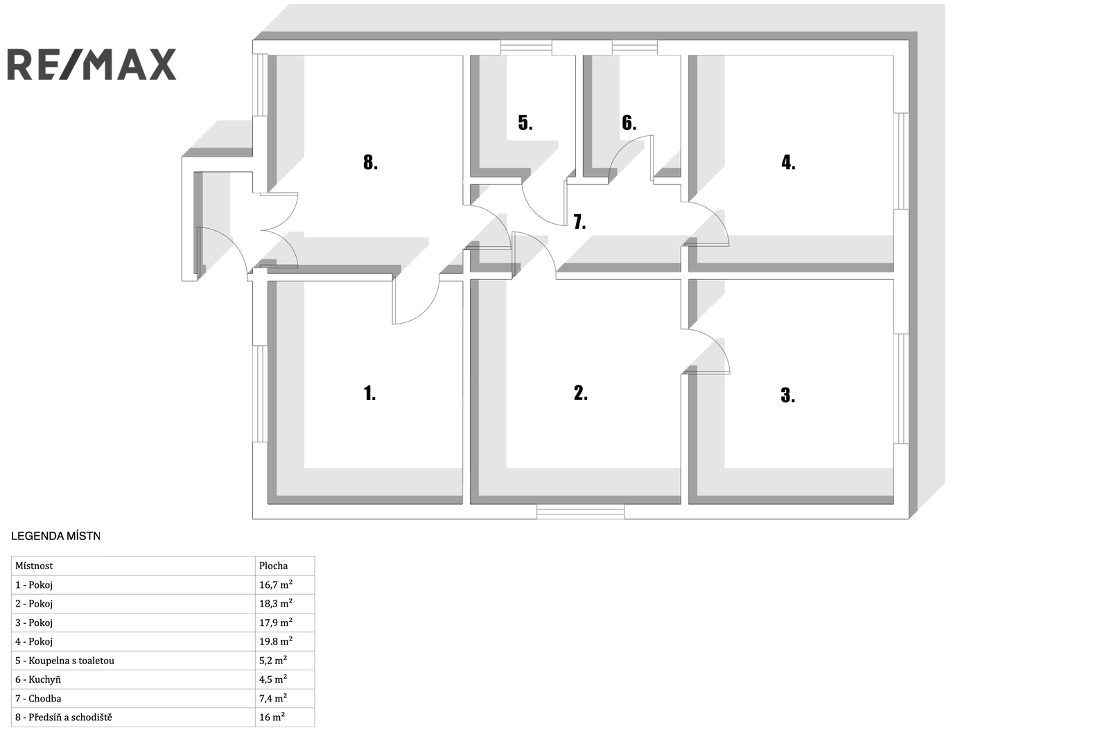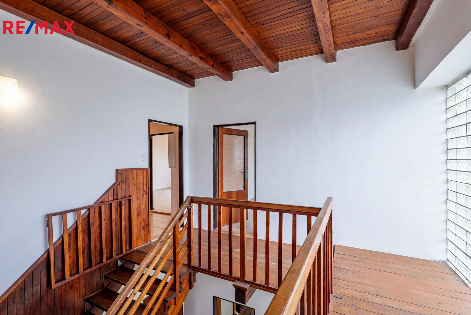 Jedná se o 3. podlažní rodinný dům ve struktuře: -1PP, 1. a 2.NP, 3.NP rozsáhlá zastavitelná půda na výši obytných místností, dřevěné zpracování obkladů vč. stropu a schodiště s ochozem v hale. Předsíň, prostorné chodby, vstupní hala. Dům je prosvětlený okny a vzdušný. Střecha v ideální poloze na solární panely.