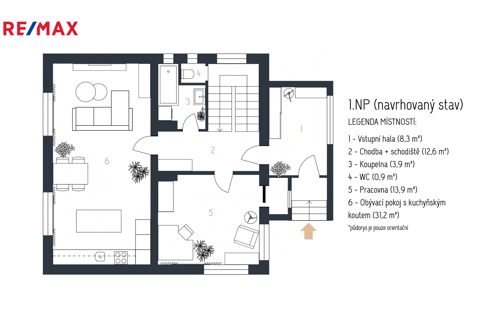 Dům je v původním stavu, takže nabízí ideální příležitost k rekonstrukci a přizpůsobení moderním požadavkům. Velmi jednoduchou úpravou dispozice přízemí získáte moderní vzdušné prostory odpovídající současným trendům rodinného bydlení.