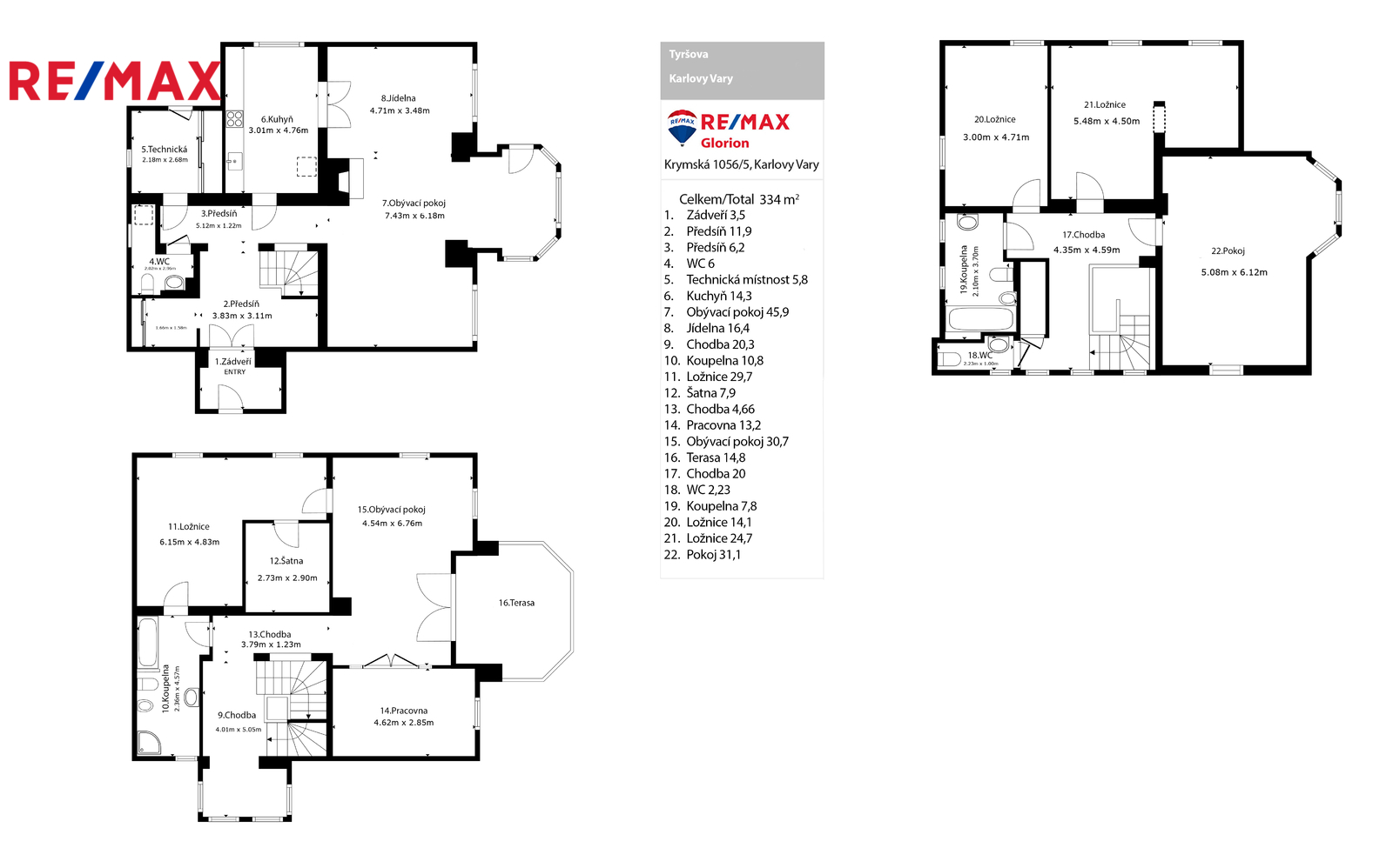 V patře najdete pracovnu, ložnici s vlastní šatnou a koupelnou, vybavenou vanou i parním sprchovým boxem. Další pokoj nabízí vstup na balkon, odkud se otevírá dechberoucí výhled na Krušné hory, lázeňské lesy a rozhlednu Diana – jako byste se dívali do pohádky.